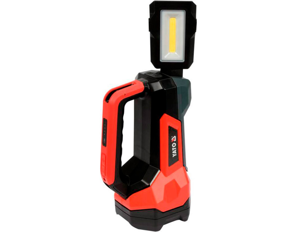Ліхтар YATO YT-08548, що поєднує функції спрямованого прожектора та регульованого прожектора, основою якого є корпус ліхтаря. Дальність прожектора: 244 м. Прожектор світиться світлодіодом потужністю 600 лм, а прожектор - світлодіодом COB потужністю 1000 лм. Ліхтарик живиться від вбудованого акумулятора ємністю 8000 мАг, який також можна використовувати як блок живлення. У ручці є 4-ступінчастий індикатор заряду акумулятора. Пристрій пропонує 9 режимів роботи: