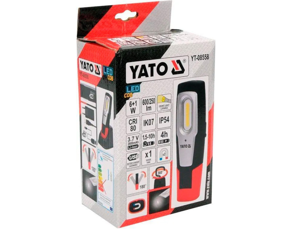 | Ліхтар Yato YT-08558 — надійне рішення для професіоналів і ентузіастів, які цінують якість та функціональність в інструментах. Цей ручний, інспекційний ліхтар обладнаний світлодіодами COB та SMD, що забезпечують потужний світловий потік у 600 люмен. Завдяки вбудованому Li-Ion акумулятору ємністю 2600 мАч, ліхтар може працювати від 1,5 до 10 годин, в залежності від вибраного режиму: максимального, середнього або мінімального. Однією з ключових особливостей Yato YT-08558 є його захист від води та ударів, що відповідає класам IK07 та IP54. Це означає, що ліхтар стійкий до впливу бризок води та може витримати помірні механічні навантаження. Така надійність робить його ідеальним вибором для роботи в складних умовах, включаючи майстерні та будівельні майданчики. Ліхтар оснащений магнітною зарядною станцією, що дозволяє легко підтримувати акумулятор завжди зарядженим. Магнітні елементи на корпусі дають змогу закріпити його на металевих поверхнях, забезпечуючи зручність при використанні в важкодоступних місцях. Крім того, гак для підвіски дозволяє швидко розміщувати ліхтар там, де це найбільше потрібно, відкриваючи нові можливості для організації робочого простору. Матеріали, з яких виготовлено ліхтар — гумове покриття, ABS-пластик та полікарбонат, забезпечують додаткову стійкість до зовнішніх впливів, а також зручність у утриманні. Модель відрізняється також рухомим корпусом, що може обертатись на 180°, що дозволяє налаштувати світловий промінь під потрібним кутом. Для зручності користувача передбачено індикатор низького заряду акумулятора, що своєчасно нагадає про необхідність підзарядки. Це унікальне поєднання високої функціональності та практичності робить ліхтар Yato YT-08558 незамінним інструментом в арсеналі будь-якого майстра. При оптимальній робочій температурі від -10°C до +40°C, ліхтар залишається надійним помічником в будь-який сезон. Його червоний і чорний колір підкреслює стиль та забезпечує відмінну видимість, що також сприяє безпеці під час використання. Довжина ліхтаря — 190 мм, що є оптимальним варіантом для зручного транспортування та зберігання. Ліхтар Yato YT-08558 — це не просто інструмент, а справжня гарантія якості та довговічності, яка принесе незрівнянне задоволення від користування. Обирайте Yato — вибір на користь інновацій та надійності! |