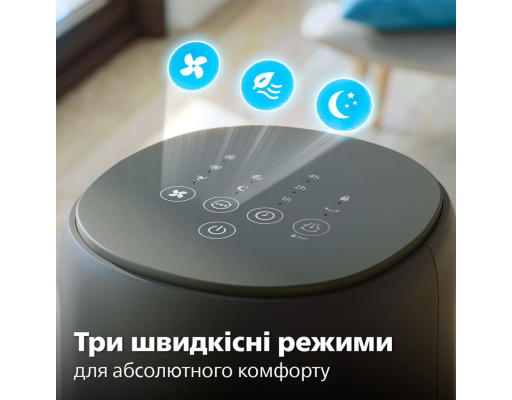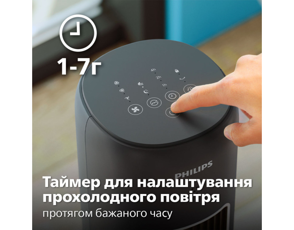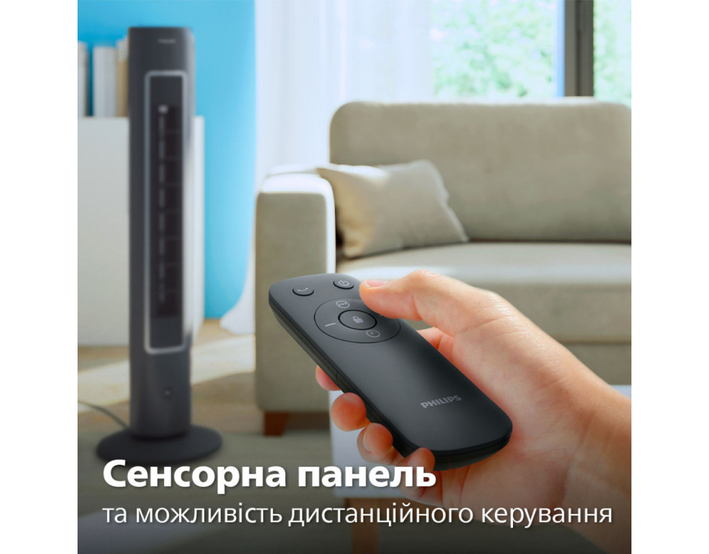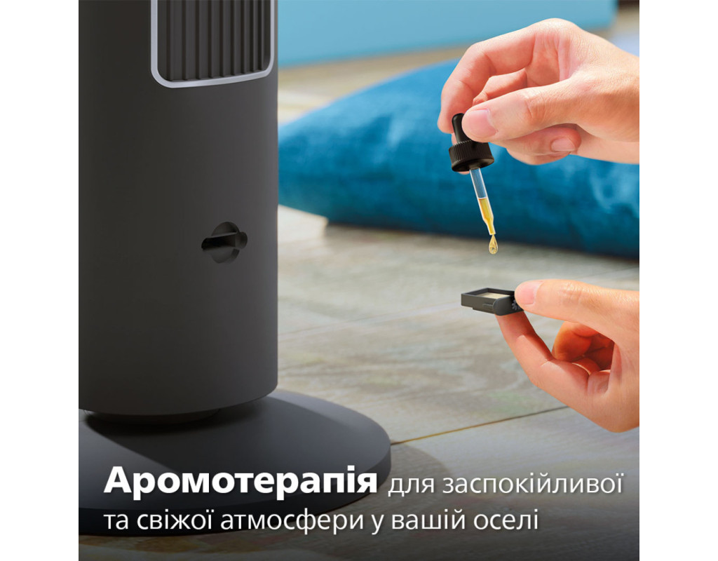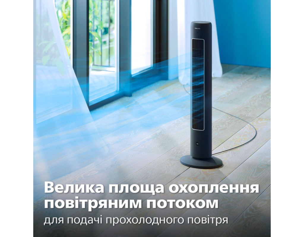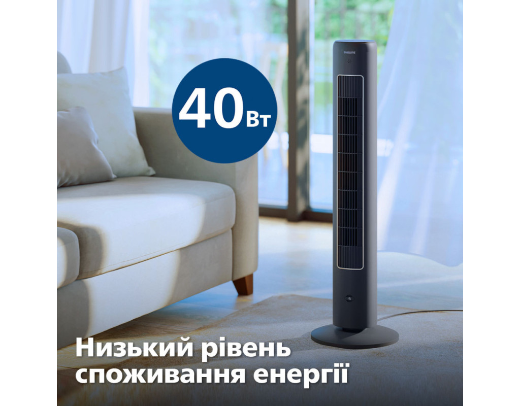 Насолоджуйтеся потужним охолодженням із мінімальним рівнем шуму та споживання енергії. Цей вентилятор, що самостійно обертається і розроблений для забезпечення високої продуктивності, швидко охолоджує все приміщення. За бажанням він також може поширювати улюблені аромати. Вихідний отвір для повітря є широким і високим, що забезпечує максимальне охоплення та швидке охолодження всього приміщення. Завдяки функції осциляції, що дозволяє вентилятору обертатися під кутом 60°, охолоджене повітря може досягти будь-якого куточка, забезпечуючи прохолоду та комфортну атмосферу у всьому приміщенні. Велика площа охоплення повітряним потоком для комфортного охолодженняВихідний отвір для повітря є широким і високим, що забезпечує максимальне охоплення та швидке охолодження всього приміщення. Завдяки функції осциляції, що дозволяє вентилятору обертатися під кутом 60°, охолоджене повітря може досягти будь-якого куточка, забезпечуючи прохолоду та комфортну атмосферу у всьому приміщенні. Режим для будь-якого настроюНалаштуйте роботу вентилятора відповідно до своїх потреб (легкий бриз або потужніший потік повітря) за допомогою трьох швидкісних режимів. Завдяки трьом універсальним режимам – Normal (Звичайний), Natural Wind (Природний вітер), Quiet Sleep (Тихий сон) – ви можете обрати ідеальний режим, що відповідає вашим побажанням, і створити відчуття абсолютного комфорту. Аромотерапія для свіжості у вашій оселіПосильте ефект охолодження, розпиливши у повітрі улюблені ефірні олії і створивши заспокійливу свіжу атмосферу. Доповнення у вигляді дифузора ароматів дозволяє створити ідеальну атмосферу для приємного відпочинку й гарного самопочуття (1). Режим Quiet Sleep (Тихий сон) для комфорту вночіНасолоджуйтеся спокійним безтурботним сном із режимом Quiet Sleep (Тихий сон). Цей режим поступово знижує швидкість вентилятора до мінімальної протягом 30 хвилин, дозволяючи вам спокійно заснути й одночасно заощаджуючи енергію. Відчуйте подих вітерця з режимом Natural Wind (Природний вітер)Впустіть у кімнату подих свіжого бризу з режимом Natural Wind (Природний вітер) і насолоджуйтеся більш природним та освіжаючим повітрям, не виходячи з дому. Заощаджуйте електроенергію та позбавтесь незручностей за допомогою функції таймераУстановіть таймер від 1 до 7 годин, що дозволить вам насолоджуватися прохолодним повітрям протягом бажаного часу, а також заощаджувати електроенергію і скорочувати витрати. Наш вентилятор-вежа потужністю 40 Вт є енергоефективним та споживає менше енергії, ніж звичайна лампочка. Витончений та компактний дизайнМінімалістичний привабливий дизайн, який органічно впишеться в будь-який інтер’єр. Витончений компактний дизайн дозволяє розміщати вентилятор у спальні, офісі, кухні та інших місцях з обмеженим простором. Розташуйте вентилятор-вежу в кутку або біля стіни, щоб він вам не заважав. Осциляція 60° дозволяє досягти будь-якого куточкаОптимальна осциляція забезпечує циркуляцію повітря по всій кімнаті. Забудьте про нерівномірне охолодження чи задушливе повітря, лише комфорт і прохолода. Зручність керування одним дотиком завдяки пульту дистанційного керування та сенсорній панелі керуванняСенсорна панель керування і ергономічний пульт дистанційного керування дозволять легко використовувати вентилятор-вежу в будь-якій кімнаті. Ретельно переві