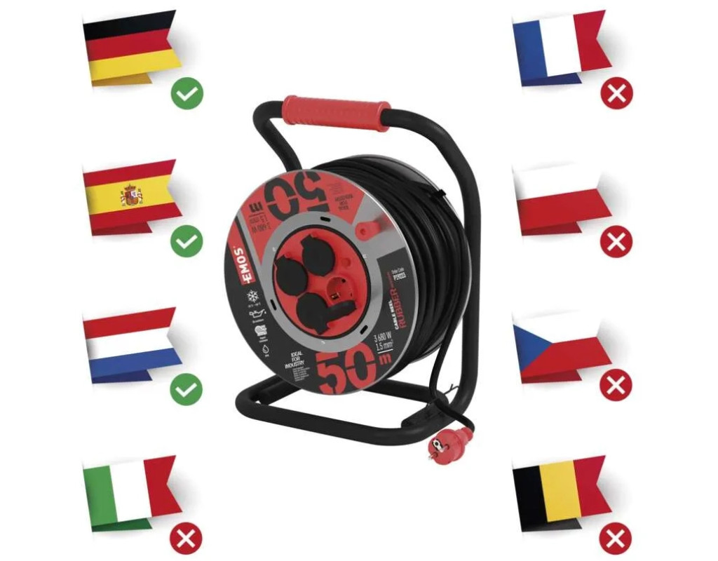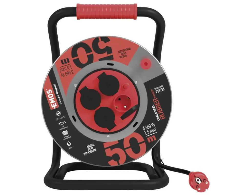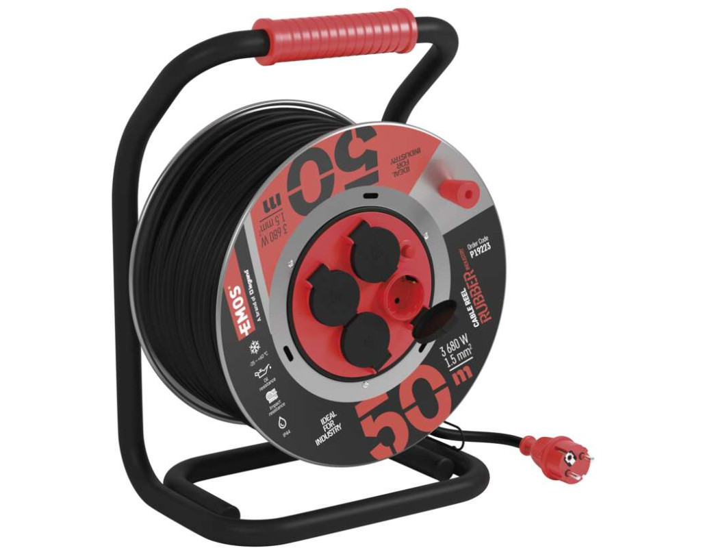 Подовжувач розетки на барабані Надійний подовжувач з поперечним перерізом 1,5 мм² витримує воду, вологу та високі й низькі температури від -25 °C до +60 °C. Таким чином, він пропонує багато можливостей для професійного використання, наприклад, у будівельній або сільськогосподарській галузях, де виникають середні та високі механічні навантаження. Перевагою є одночасне підключення до чотирьох електричних пристроїв та ступінь захисту IP44. Легке намотування кабелю забезпечується напрямною петлею та міцним металевим корпусом лебідки, що разом гарантує тривалий термін служби та легке використання під час роботи. Довжина кабелю 50 м Вам потрібно підключитися до електромережі на великих площах у будівництві, сільському господарстві чи садівництві? З кабелем довжиною 50 м ви отримаєте повну гнучкість та зможете підключати своє електрообладнання без обмежень там, де вам це потрібно. Міцна конструкція лебідки Міцна конструкція лебідки та металевий корпус котушки роблять котушку надійним та міцним партнером з тривалим терміном служби. Направляюче вушко забезпечує легке та плавне намотування троса. Гальмо блокування котушки запобігає мимовільному намотуванню та фіксує трос саме так, як вам потрібно. Котушка також проста в обігу та проста у використанні. 4 розетки 2P + PE Підключайте до 4 електричних пристроїв одночасно до розеток з напругою 230 В змінного струму. Термічний запобіжник захищає підключене електрообладнання від перевантаження в мережі, яке може призвести до пошкодження пристроїв. У разі перевантаження термозапобіжник автоматично розриває ланцюг, забезпечуючи безпеку вашого електрообладнання. Клас захисту IP44 Ви працюєте у вологих та мокрих середовищах? Клас захисту IP44 означає стійкість до бризок води в усіх напрямках. Тож ви можете безпечно використовувати подовжувач навіть у цих умовах. Крім того, захист також поширюється на проникнення сторонніх предметів, таких як дрібні інструменти або дроти (> 1 мм). Ступінь захисту визначається стандартом EN 60529. Провідник H07RN-F 1,5 мм² Високоміцний кабель з поперечним перерізом 1,5 мм² витримує вологість, сирість та коливання температури від -25 °C до +60 °C. Силовий провідник H07RN-F H07RN-F може витримувати середні та важкі механічні навантаження, що зазвичай зустрічаються в будівництві або сільському господарстві. Навантаження на спіральний кабель становить 230 В змінного струму: макс. 4,35 А/1000 Вт, навантаження на повністю розгорнутий кабель становить 230 В змінного струму: макс. 13,04 А/3680 Вт. |