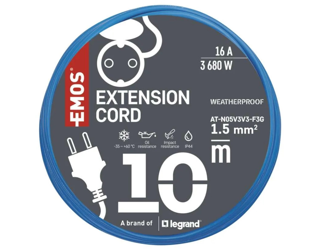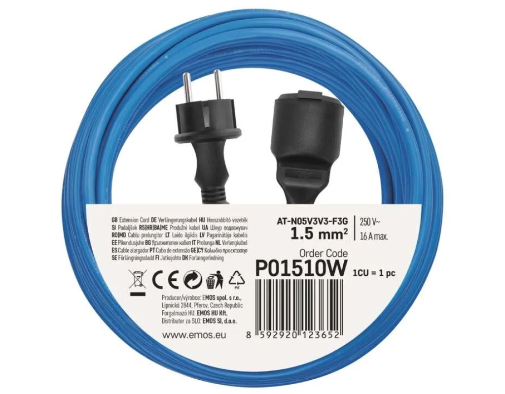 Подовжувач погодостійкий Emos P01510W 1 розетка 10 м Силікон 1.5 мм2. Універсальний погодостійкий подовжувач Emos P01510W призначений для використання в різних погодних умовах, так як має ступінь захисту IP44, що означає, що він захищений від бризок води і твердих тіл розміром більше 1 мм. Особливістю цього подовжувача є високоякісна силіконова ізоляція, яка має багато переваг порівняно з ПВХ ізоляцією. Силіконова ізоляція: