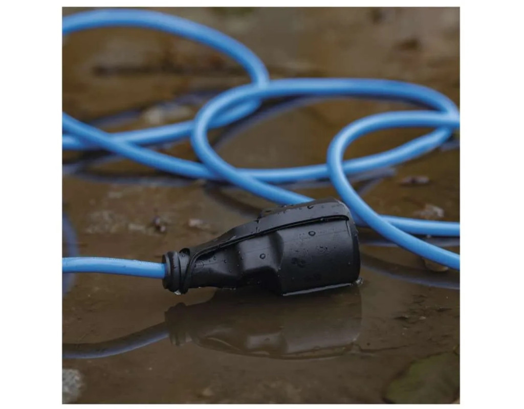Подовжувач має одну надійну розетку з заземленням, яка закрита зручною заглушкою для захисту від пилу та сміття. Все це робить його практичним і довговічним при роботі в різних погодних умовах. Це ідеальний вибір для тих, хто шукає якісний і функціональний подовжувач для свого саду, гаражу, тераси або інших місць на відкритому повітрі. |