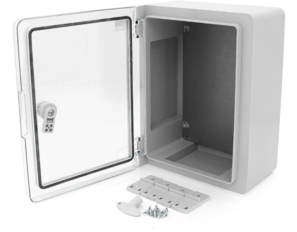 | Матеріал виготовлення: корпус: АБС-пластик; прозорі дверцята: полікарбонат; ущільнювач: поліуретанова піна; монтажна панель: оцинкована сталь. Особливості конструкції: -Ударострокове виконання IK10; -виготовлені з матеріалу, стійкого до UV-випромінювання, корозії та плісняви; -Зручний монтаж обладнання завдяки знімній монтажній панелі; -можуть встановлюватися в приміщеннях з високим рівнем вологості або зі значним вмістом пилу та на відкритому повітрі; -широка сфера застосування; -комплектація: монтажна панель, ключ, набір для кріплення (пластикові кронштейни для кріплення корпусу до стіни 4 шт.) Товщина монтажної панелі, мм -1 Ударостійкість - IK 10 Ступінь захисту - IP 65 Висота, мм 330 Ширина, мм 250 Глибина, мм 140 Тип виконання корпусів навісний Колір (АБС пластикату) - світло-сірий Діапазон робочих температур, ⁰С -40...+70 |