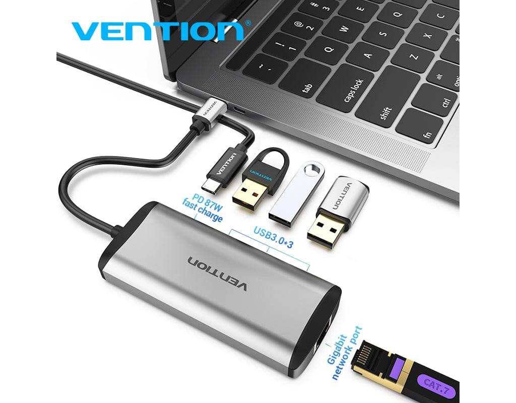 | USB хаб 5в1 Type C з 3 портами USB, 1 портом RJ45 та 1 портом зарядки PD, дозволяє підключати мишу, U-диск, клавіатуру, жорсткий диск тощо.