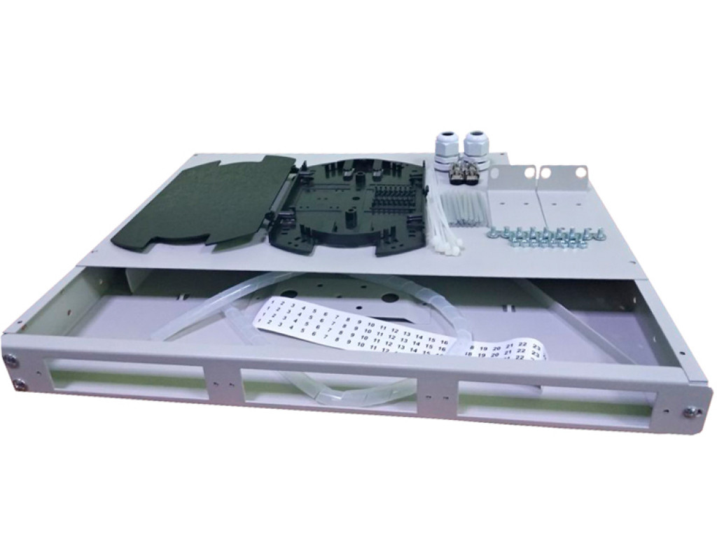 Панель оптична розподільча (оптична патч-панель) Crosver FOB-19/1-332/32-1-24 призначена для монтажу в 19-дюймову стійку і застосовується для закінцьовування оптичних кабелів методом зварки з використанням пігтейлів. Вона є універсальним рішенням для реалізації ввідно-розподільчих пристроїв, телекомунікаційних кросів, серверних кімнат та інших комунікаційних центрів. Патч-панель Crosver FOB-19/1-332/32-1-24 складається з сталевого корпусу зі знімною кришкою і висувною передньою панеллю для зручного доступу всередину. Висувна панель поворотного типу може відкриватися наліво, забезпечуючи доступ до сплайс-касети без демонтажу із стійки. На передній панелі є 3 посадкових місця, в які можна встановити лицьові панельки під адаптери різних типів. Конструктивно модель FOB-19/1-332/32-1-24 схожа на патч-панелі Crosver типів FOB-19/1-016/16-1-24 та FOB-19/1-300/32-1-24, але має деякі особливості.
