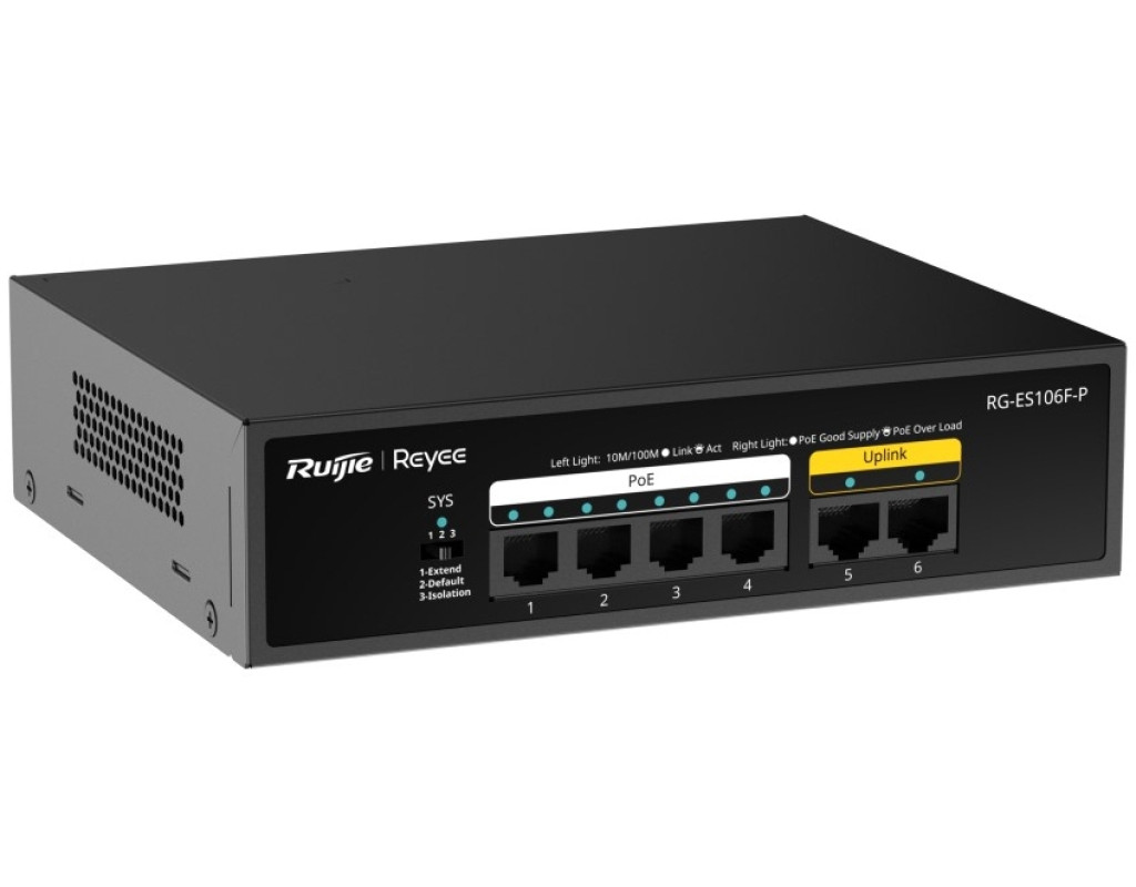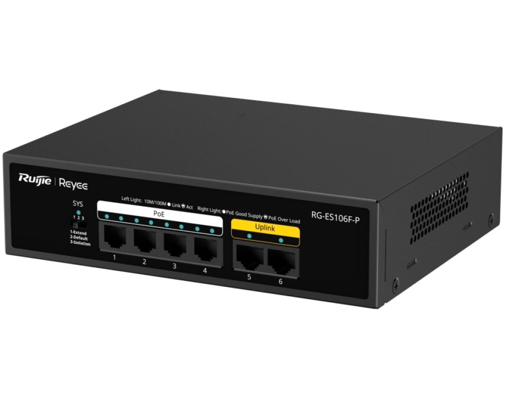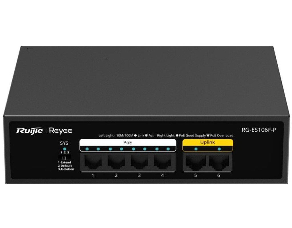 | Комутатор мережевий Ruijie Networks RG-ES106F-P — це втілення ефективності та надійності для будь-якої невеликої мережі чи офісного середовища. Завдяки некерованій архітектурі, цей пристрій максимально простий у використанні: він не потребує складної конфігурації, що робить його ідеальним вибором для тих, хто цінує безшовність в установці та експлуатації. Оснащений 6 портами 10/100/1000TX, з яких 4 підтримують технологію PoE+ з максимальною потужністю до 54 Вт, комутатор забезпечує легке підключення та живлення пристроїв, таких як IP-камери чи точки доступу. Інтегроване автовизначення MDI/MDIX позбавляє необхідності використовувати кросовані кабелі, тим самим підвищуючи зручність та швидкість підключення. Компактний настільний форм-фактор і розміри 166 x 132.6 x 43 мм дозволяють легко розмістити цей комутатор в будь-якому приміщенні без зайвих зусиль. Додатковою перевагою є його елегантний дизайн, який органічно вписується в будь-яке робоче середовище. Робочий температурний режим від 0° до +45°C у поєднанні з діапазоном вхідної напруги від 100 до 240 В забезпечує універсальність використання в різних умовах. Комутаційна здатність пристрою до 1.2 Гбіт/с і швидкість обробки 0.89 млн. пакетів в секунду гарантують високу продуктивність і безперебійну роботу мережі. Таблиця МАС-адрес, що вміщує до 2000 записів, дозволяє оптимально обробляти значні потоки даних, що зміцнює стабільність та продуктивність вашої мережі. Ruijie Networks RG-ES106F-P — це поєднання функціональності, якості та простоти у використанні, що задовольнить потреби сучасного користувача, забезпечуючи стабільне і надійне з'єднання. Це ваш вибір для бездоганної мережі без компромісу в якості. |