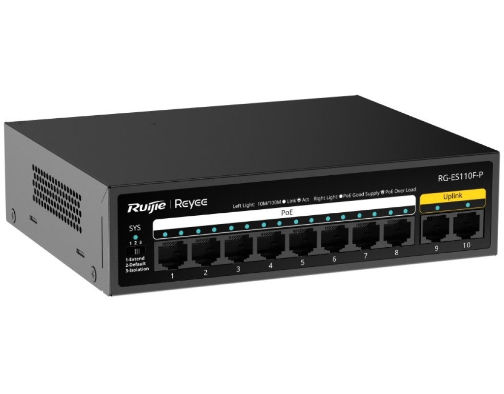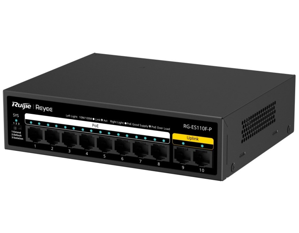 | Комутатор мережевий Ruijie Networks RG-ES110F-P - це потужний інструмент для створення високоефективної та безпечної мережі, що прекрасно підходить для малого та середнього бізнесу. Маючи настільний форм-фактор, цей комутатор не займає багато простору і легко інтегрується у вашу робочу середу, поєднуючи зручність з винятковою функціональністю. Основна перевага цього пристрою полягає в його здатності підтримувати 10 LAN портів 10/100TX, серед яких 8 PoE+ портів, що забезпечують потужність до 110 Вт. Така конфігурація дає змогу легко підключати різноманітні PoE-пристрої – від камер відеоспостереження до точок доступу чи IP-телефонів. Висока енергетична ефективність робить комутатор економічним та придатним для тривалого використання. Цей пристрій забезпечує простоту налаштування завдяки функції автовизначення MDI/MDIX, яка знімає необхідність у використанні кросованих кабелів. Додатково, інтелектуальне PoE-управління дозволяє автоматично перезавантажувати порти у разі збоїв, а також підтримує передачу даних на відстань до 250 метрів, що є ідеальним для розширених мереж відеоспостереження. Інтеграція з хмарою Ruijie надає можливість простого віддаленого моніторингу та управління мережею, якщо у вашій інфраструктурі встановлено керований комутатор від Ruijie. Це робить управління ще більш ефективним та зручним. Завдяки високо якісному складанню і ретельно підібраним компонентам, Ruijie RG-ES110F-P забезпечує надзвичайну надійність та довговічність, а також можливість адаптації до різних сценаріїв використання. Це гарантує підвищену безпеку та стабільність вашої мережі, роблячи комутатор незамінним рішенням для комфортної роботи ваших мережевих служб. |