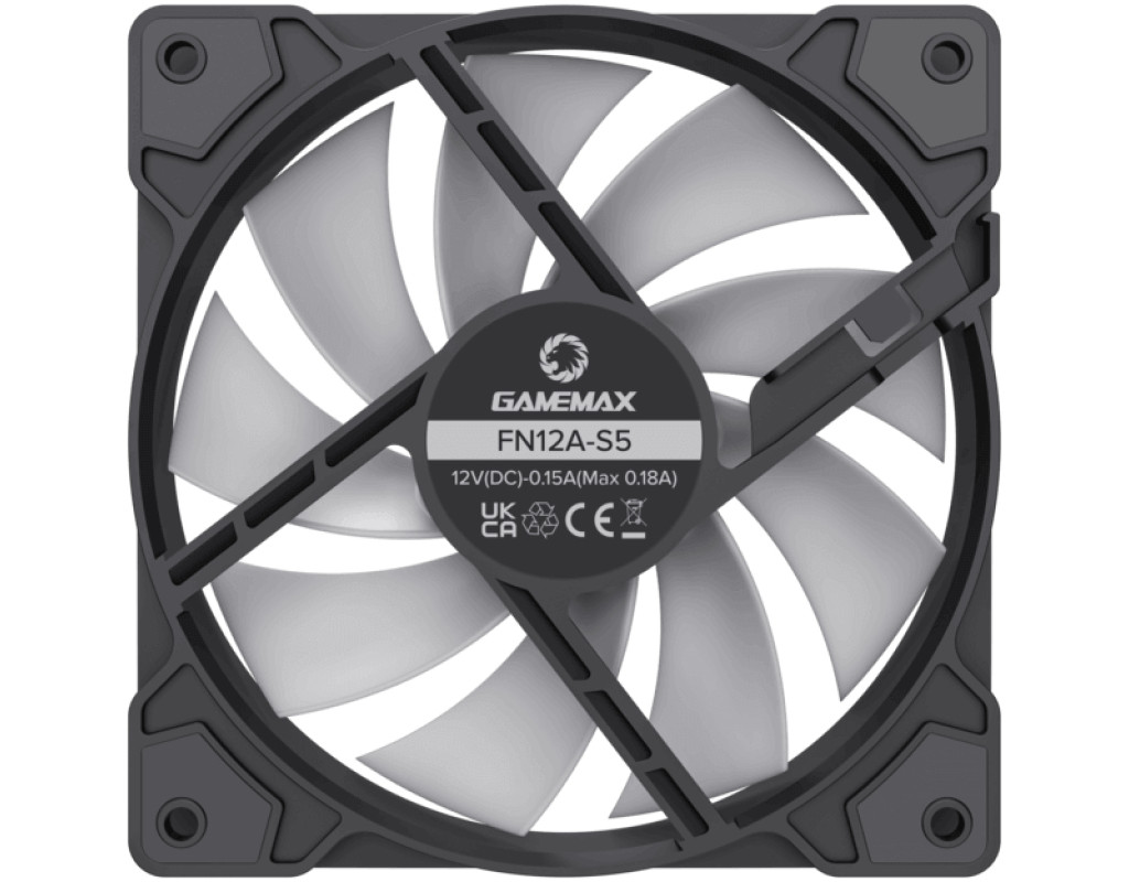 Gamemax FN12A-S5 — високопродуктивний 120-мм вентилятор ARGB з білою рамкою для охолодження корпусу ПК. Компонент підключається до 4-контактного роз'єму ШІМ материнської плати, а інтелектуальна технологія контролює швидкість при 800 ~ 1600 ± 10% об/хв відповідно до температури. Це забезпечує тиху роботу вентиляторів, максимальний рівень шуму якого становить лише 30 дБ. Адресовані RGB-світлодіоди можна налаштовувати за допомогою пульта дистанційного керування ARGB. Є кілька режимів та швидкостей освітлення ARGB, що забезпечують барвисті світлові ефекти, дозволяючи створити практичну та красиву систему охолодження. Ви також зможете вмикати / вимикати світловий ефект вентилятора та перемикати сигнал ARGB-концентратора вентилятора на 5 В порт ARGB материнської плати за допомогою режиму синхронізації AURA Sync Mode. Вентилятор вирізняється протиударною конструкцією. Рама вентилятора закріплена з обох боків за допомогою 8 штук амортизувальних гумових прокладок. Гумовий м'який матеріал має хороший амортизаційний ефект, що може зробити внутрішню роботу комп'ютерного корпусу стабільною та зменшити рівень шуму між вентилятором та корпусом комп'ютера. |