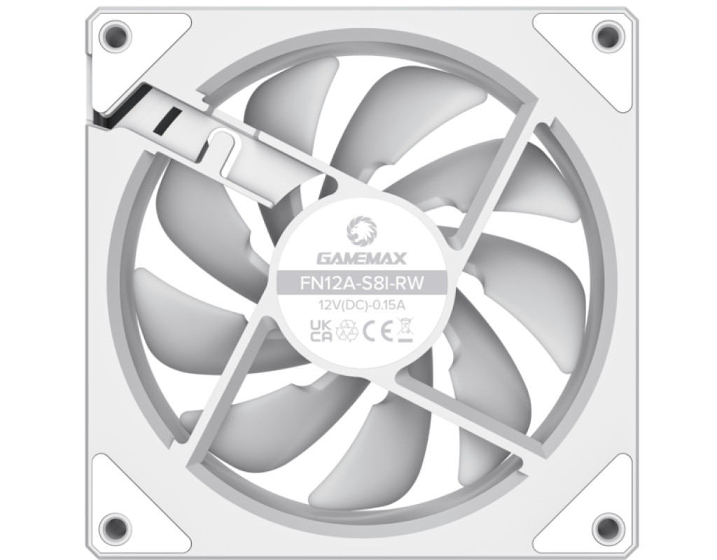 GameMax FN12A-S8I-R, білий реверсивний 120 мм ARGB вентилятор - реверс вентилятора лопаті для кожуха блоку живлення / нижня пластина корпусу для повітрозабірників!