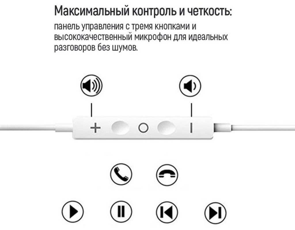 Ці дротяні навушники оснащені роз’ємом 3,5 мм, а довжина кабелю становить 1,2 метри. На кабелі розташована панель керування з трьома кнопками та високоякісний мікрофон, що забезпечує чітку передачу голосу під час розмови та знижує небажані шуми. Крім відмінної якості звуку та зручності використання, навушники виготовлені з високоякісних матеріалів та мають ретельно продумані розміри. Їх анатомічна форма забезпечує комфорт для вух навіть за тривалого носіння. |