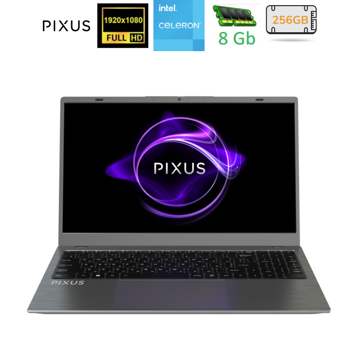 | PIXUS BIT – ДОСТУПНИЙ НОУТБУК З ВЕЛИКИМ, ЯСКРАВИМ FULL HD ДИСПЛЕЄМPixus BIT – це новий ноутбук розроблений, щоб подарувати вам яскраве, неймовірно деталізоване зображення за доступною ціною!Ноутбук Pixus BIT обладнаний великим, яскравим Full HD IPS дисплеєм з діагоналлю 15.6 дюймів та роздільною здатністю 1920x1080 px. Дані характеристики забезпечують передачу чіткого, деталізованого зображення без жодних розмитих пікселів. На ноутбуку BIT вам буде комфортно працювати з текстом та таблицями, переглядати фільми, або грати в прості ігри. IPS матриця забезпечує відтворення насичених та природних кольорів на екрані ноутбука, в порівнянні з застарілою TN матрицею, разом з ноутбуком BIT та IPS матрицею ви отримаєте дійсно яскраве та насичене зображення.Ще однією важливою перевагою ноутбука Pixus BIT є матове покриття екрана, яке захищає зображення від світлових відблисків та зменшує навантаження на очі при тривалій роботі за ноутбуком. Pixus BIT розроблений так, щоб ви могли працювати з комфортом, навіть, якщо на екран попадає сонячне світло. Також для комфортної роботи в вечірній час ноутбук Pixus BIT має підсвічування клавіатури. Ви зможете легко та комфортно працювати з клавіатурою навіть при відсутності світла.ДОСТАТНЯ ПОТУЖНІСТЬ! 8 GB ОПЕРАТИВНОЇ ПАМ’ЯТІ та 256 GB ДЛЯ ЗБЕРІГАННЯ ФАЙЛІВНоутбук Pixus BIT має достатню потужність для більшості офісних завдань та специфічних програм таких як: BAS\BAF бухгалтерія, KBS, кошторисні програми: AVK5 та Кошторис 8. 8 GB оперативної пам’яті ноутбука забезпечать стабільну роботу багатьох програм, навіть при одночасному використанні. Великою перевагою ноутбука BIT є можливість збільшення оперативної пам’яті до 16 GB. Крім офісних програм на ноутбуку BIT ви легко зможете використовувати програми для редагування фото, як GIMP та базові програми для освоєння дизайну. Вбудована пам'ять ноутбука BIT представлена змінним SSD M2 диском обсягом у 256 GB. Якщо вам потрібно більше місця для зберігання файлів та програм ви легко зможете замінити встановлений SSD на інший SSD диск обсягом аж до 4 Терабайт!ЕНЕРГОЕФЕКТИВНИЙ ПРОЦЕСОР. ВЕЛИКА КІЛЬКІСТЬ ФУНКЦІОНАЛЬНИХ РОЗ'ЄМІВPixus BIT оснащений енергоефективним процесором Intel Celeron N5095 з чотирма ядрами та частотою в 2.9 ГГц. Потужності ноутбука BIT та даного процесора достатньо для комфортної роботи в програмах по об'ємному моделюванню як SketchUP або інших схожих за характеристиками програмах.Крім хороших характеристик за доступну ціну, ноутбук Pixus BIT має великий набір функціональних роз’ємів по боках ноутбука. Pixus BIT має: роз’єм HDMI для підключення монітора або телевізора, TF-CARD слот, один роз’єм USB 3.0 та два роз’єми USB 2.0, мережевий роз`єм RJ-45 для швидкого інтернету (1Гб/с ), роз’єм Type-C з підтримкою зарядки USB-PD, комбінований роз’єм 3.5 мм для навушників та мікрофону. А ще - спеціальну шторку приватності, яка закриває фронтальну камеру для вашого спокою та безпеки.ДВІ МОДИФІКАЦІЇ НОУТБУКА Windows 11 Pro або без ОСНоутбук BIT постачається в двох модифікаціях: з вже встановленою операційною системою, а саме ліцензованою версією Windows 11 Pro, або без операційної системи, що дозволить вам самостійно обрати та встановити операційну систему.Обравши ноутбук BIT з Windows 11 Pro ви отримаєте готовий до роботи пристрій, як тільки дістанете його з коробки. Жодних турбот про пошук та встановлення ліцензованої операційної системи + економія значних коштів на покупці Wi