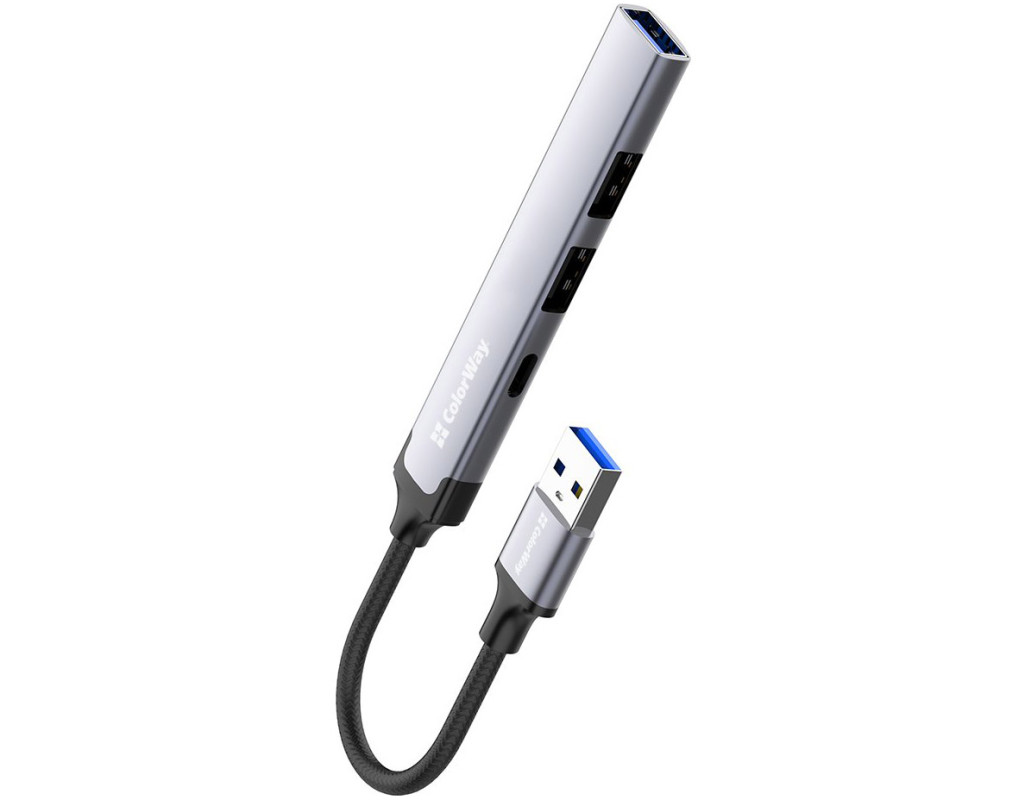 USB хаб СolorWay USB-C 4-в-1 є універсальним аксесуаром, що значно розширює функціональні можливості вашого пристрою, додаючи чотири додаткові USB порти. Цей зручний пристрій дозволяє одночасно підключати кілька зовнішніх девайсів, що значно спрощує вашу роботу і зробить її продуктивнішою. Забудьте про постійну заміну кабелів – тепер у вас завжди буде постійний доступ до всіх необхідних пристроїв, таких як клавіатури, миші, зовнішні жорсткі диски та інші периферійні пристрої. Особливості