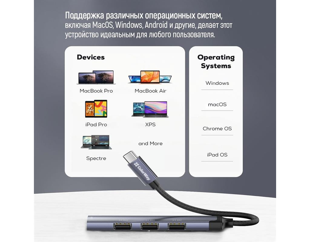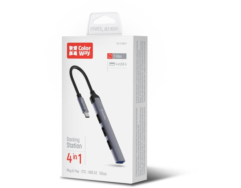 | USB хаб СolorWay USB-C 4-в-1 є універсальним аксесуаром, що значно розширює функціональні можливості вашого пристрою, додаючи чотири додаткові USB порти. Цей зручний пристрій дозволяє одночасно підключати кілька зовнішніх девайсів, що значно спрощує вашу роботу і зробить її продуктивнішою. Забудьте про постійну заміну кабелів – тепер у вас завжди буде постійний доступ до всіх необхідних пристроїв, таких як клавіатури, миші, зовнішні жорсткі диски та інші периферійні пристрої. |