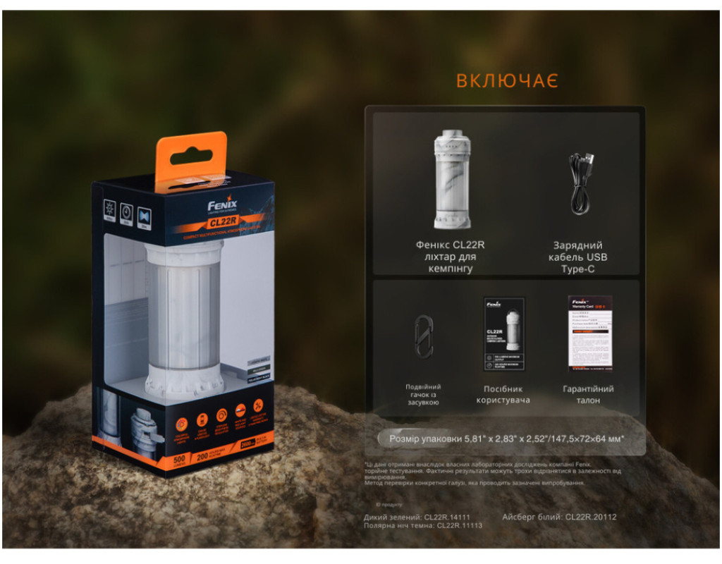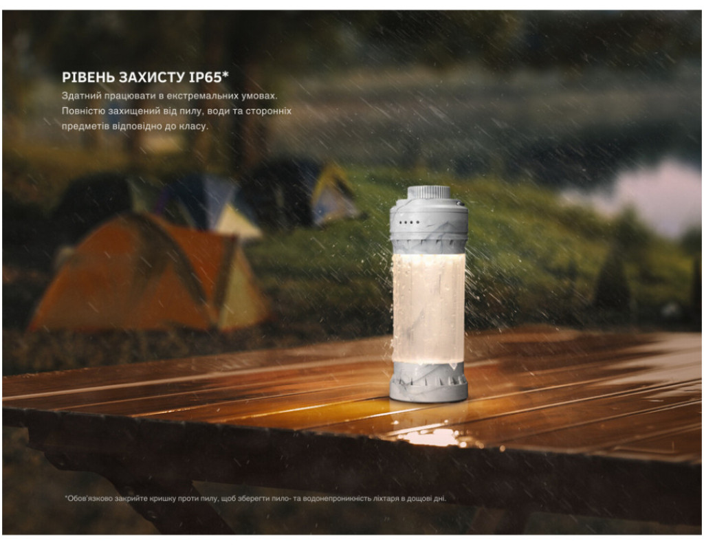 | Ліхтар Fenix CL22R в темно-зеленому кольорі – це ідеальне рішення для тих, хто цінує комфорт і універсальність під час відпочинку на природі чи в подорожах. Завдяки захисту IP65, він стане вашим надійним супутником за будь-яких погодних умов. Незалежно від того, чи ви плануєте кемпінгову вилазку, подорож в гори чи просто потребуєте джерело світла для дому, Fenix CL22R забезпечить вас яскравим і безперебійним світлом. Цей ліхтар оснащений передовими світлодіодами COB з дальністю світлового потоку до 80 метрів і яскравістю до 300 люмен, що дає змогу широко освітити простір навколо вас. Його легкий корпус, виготовлений з ударостійкого полікарбонату, здатний витримувати падіння з висоти до 1,5 метрів і є стійким до механічних пошкоджень. Компактні розміри (38 х 42 х 115 мм) і вага всього 135 г роблять його ідеальним для носіння в рюкзаку або навіть у кишені. Ліхтар оснащений енергоефективним акумулятором Li-Ion ємністю 2600 мАгод, що забезпечує до 200 годин роботи на одному заряді, а заряджається зручно через USB Type-C, приблизно за 3 години. Fenix CL22R пропонує безліч можливостей для налаштування освітлення. Він має 12 режимів, від мінімального, промінь якого споживає лише 5 лм для довготривалої роботи, до максимального, комбінованого режиму, який видає до 500 лм, розподіляючи світло на 360°. Спеціальне кольорове підсвічування, включаючи червоний світло і миготливі режими, створює атмосферу комфорту та затишку, роблячи його ідеальним для вечірніх посиденьок біля вогнища чи навіть у домашніх умовах за відсутності електроенергії. Особлива увага приділена інтелектуальній системі захисту від перегрівання, що автоматично знижує яскравість на потужних режимах, запобігаючи перегріву й подовжуючи термін служби ліхтаря. Інтуїтивно зрозумілий інтерфейс дозволяє легко перемикатися між режимами завдяки обертовому і натискному механізму перемикачів. Ліхтар також порадує вас такими додатковими перевагами, як кольорова індикація рівня заряду, яка сигналізує про зниження енергії, що дозволяє вчасно поповнити запас. Окрім стандартних функцій, ліхтар має вбудовану ручку для зручного підвішування на гілку чи кріплення на рюкзак, що робить його ще більш універсальним у використанні. Комплектація товару включає ліхтар Fenix CL22R, зарядний кабель USB Type-C, карабін для кріплення, інструкцію користувача та гарантійний талон на 2 роки. Втілюючи в собі стійкість, багатофункціональність і стиль, цей ліхтар стане незамінним помічником у будь-якій ситуації. |