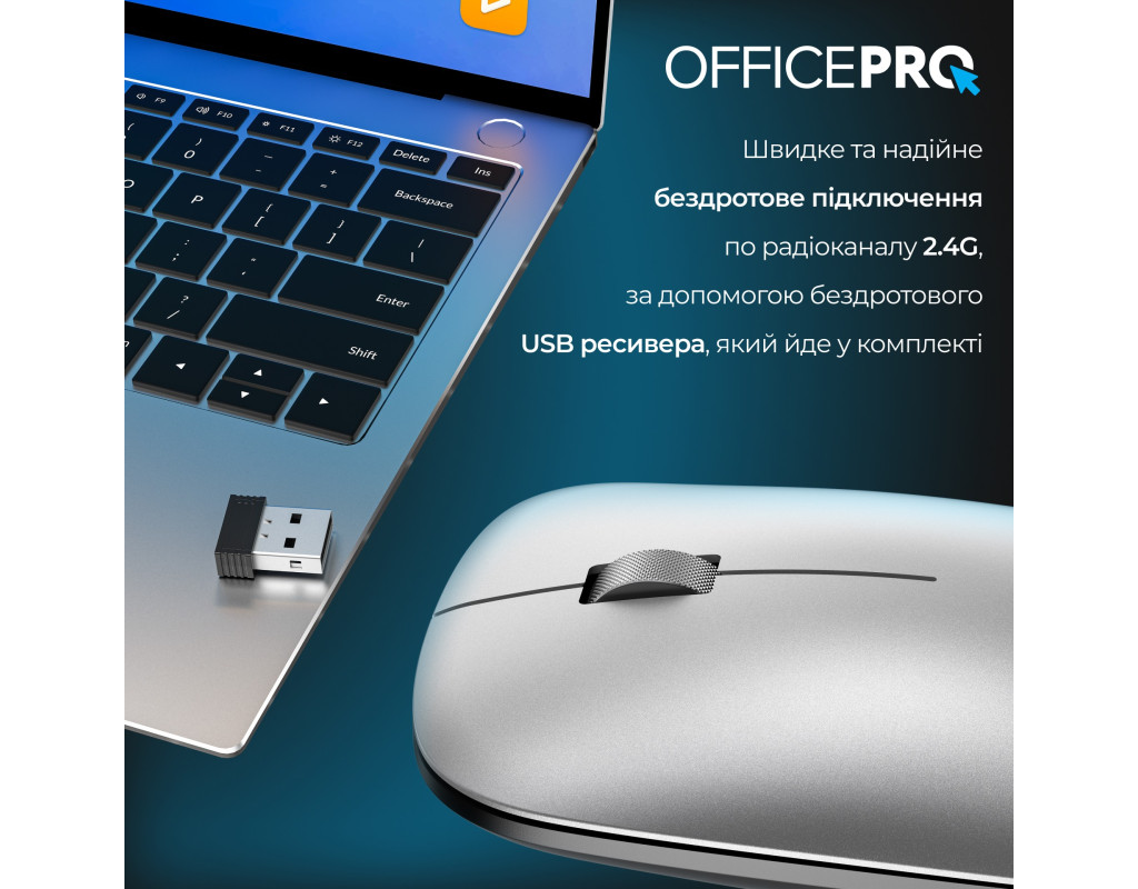 | Бездротова миша Officepro M225S — це ідеальне рішення для тих, хто прагне до продуктивної роботи за комп’ютером. Завдяки можливості підключення через 2.4G ресивер, ця миша забезпечує стабільне і надійне з’єднання з вашим пристроєм, що дозволяє вам працювати без перебоїв. Однією з основних переваг моделі є безшумні ліві та праві кнопки, які створюють комфортну атмосферу для роботи, знижуючи рівень шуму в офісному середовищі та підвищуючи продуктивність.