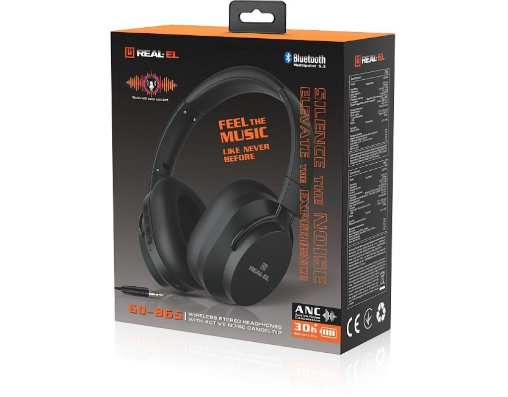 Бездротові стереонавушники з мікрофоном REAL-EL GD-865 – це ідеальний вибір та незабутні звукові враження. Завдяки двом вбудованим мікрофонам ці навушники забезпечують активне шумозаглушення, що гарантує чистоту звуку і дозволяє поринути у музику без зовнішніх перешкод. Ергономічний дизайн та регульовані м’які амбушури забезпечують тривалий комфорт навіть при тривалому носінні. Навушники здатні працювати до 30 годин в одному заряді, а з активним шумом придушення - до 20 годин, що дозволяє насолоджуватися улюбленою музикою протягом усього дня. REAL-EL GD-865 підтримує найновіший стандарт Bluetooth 5.3, що дозволяє забезпечити стабільне та якісне з’єднання з вашими пристроями. Якщо батарея розрядилася, ви завжди можете використовувати кабель AUX для продовження прослуховування. Зручно розташовані кнопки на корпусі дозволяють легко керувати гучністю, треками та телефонними дзвінками, забезпечуючи інтуїтивне керування лише одним дотиком. Гарнітуру можна легко та компактно скласти для транспортування, а міцна конструкція гарантує довговічність та надійність використання. |
