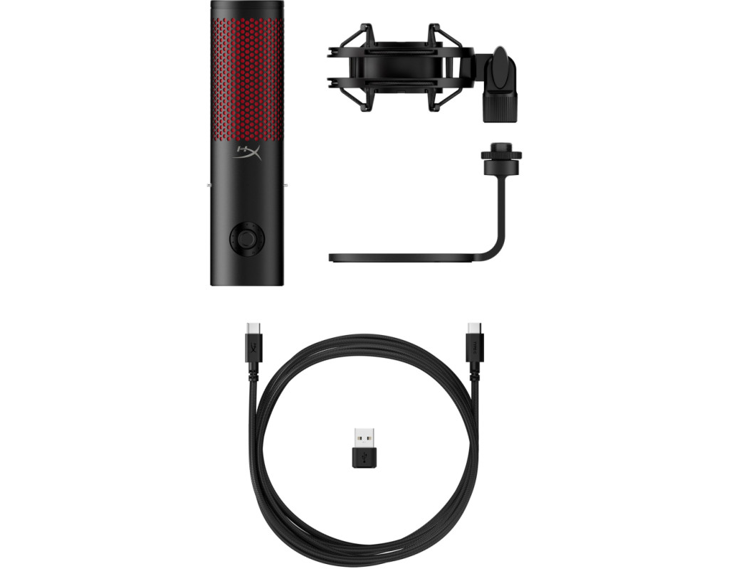 Мікрофон HyperX QuadСast 2 — це оновлена версія популярного мікрофону HyperX QuadСast, яка користується попитом як серед професіональних стримерів, так і серед ентузіастів-початківців. У новій моделі додана студійна якість запису (24 біти, 96 кГц), а також враховані численні побажання користувачів мікрофону першого покоління. Зокрема, тепер мікрофон легко виймається з амортизаційної стійки. Він також отримав індикатор рівня сигналу, суміщений із зручним регулятором рівня запису мікрофону і гучності на виході на навушники для контролю звуку. Чотири діаграми спрямованості (стерео, кардіоїда, двоспрямована чи не спрямована) тепер відображуються секторами світлодіодного кільця, розташованого в верхній частині мікрофону. Там же знаходиться і сенсор вимкнення мікрофону, якого достатньо торкнутись для миттєвого заглушення чи ввімкнення запису. Задля забезпечення максимальної якості звучання мікрофон оснащений вбудованим поп-фільтром. Фірмове червоне підсвітлення тепер можна налаштовувати за допомогою програмного забезпечення HyperX NGENUITY, яка керує 16 окремими зонами підсвітлення роздільно в ввімкненому та вимкнутому режимах. Мікрофон HyperX QuadСast 2 можна легко закріпити в усіх стандартних стійках та пантографах — він оснащений різьбою 3/5” та 5/8”. USB Type-C підключення дозволяє передавати цифровий потік на будь-які сумісні пристрої (мікрофон сумісний не тільки з ПК, Mac, консолями PlayStation 4 і 5, але і з безліччю мікшерських пультів з USB Type-C входом), а 3.5 мм аудіовихід призначений для навушників контролю звуку. Особливості HyperX QuadСast 2: