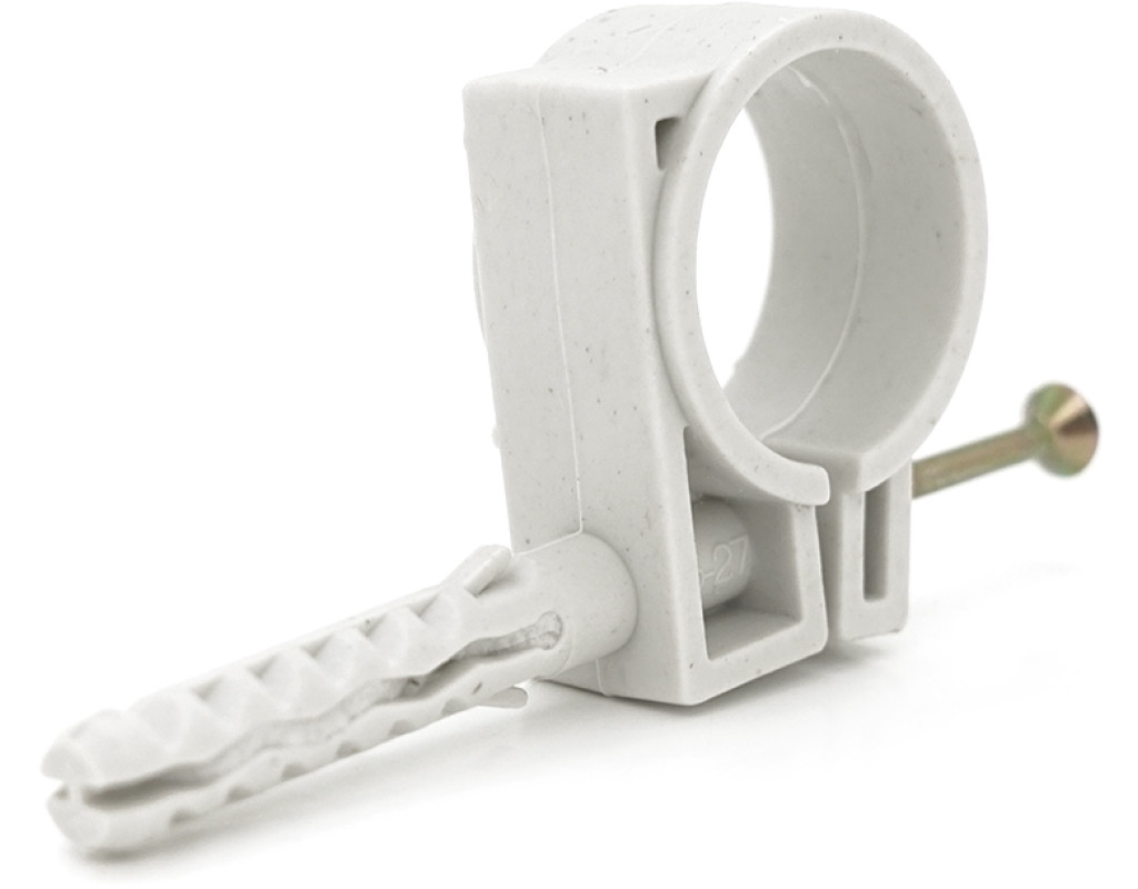 | Тип Обойма для труб та кабелю D25-27мм з ударним шурупом Виробник Україна Діаметр 25-27 мм Матеріал Поліпропілен PP A4 Колір Білий Кількість в упаковці 25 шт Застосування Фіксація труб та кабелів Робоча температура -25 ° С до +60 ° С Обойма для труб та кабелю D25-27мм із ударним шурупом 50шт. - застосовується для швидкого та надійного кріплення проводів та ПВХ труб (гофротруба, жорстка пластикова труба). Ударний шуруп кріпиться до будь-яких поверхонь: до стіни з бетону, цегли, гіпсокартону та дерева. Кріпильний матеріал служить для встановлення проводки та конструкцій систем: вентиляції, кондиціювання, газо- та водопостачання, пожежного розведення тощо. Кріплення дозволяє монтувати утримувач на бетонні та цегляні поверхні без додаткових аксесуарів. Обойма складається з двох елементів: Пластикове кільце для фіксації труби та кабелю. Діаметр кільця визначає якого мінімальний - максимальний ∅ виробу можна протягнути до нього; Дюбель з розпірними зубцями для надійного кріплення в будь-якому матеріалі стіни, стелі. Після розклинювання дюбеля ударним шурупом (входить до комплекту) замок-фіксатор забезпечує довге та якісне утримання труб у пластиковій обоймі. Щоб витягти виріб, необхідно викрутити шуруп та повністю демонтувати елемент. Обойма є роз`ємною. Переваги: Надійний та швидкий монтаж та демонтаж, тривалий термін експлуатації; Експлуатація при низьких температурах (внутрішній та зовнішній монтаж); Стійкість до перепадів температури та вібрації; Зносостійкість до деяких неорганічних агресивних середовищ. Монтаж: Розмітка прокладки; відмітка місць кріплення; Просвердлювання отворів; Помістити трубу (кабель) відповідного діаметра, що закріплюється, в кільце; Встановити дюбель в отвір; Забити ударний шуруп. |