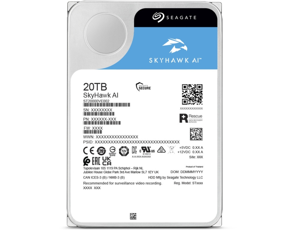 20 TB, 7200 об/хв, 512 MB, SATA III, 3.5", SkyHawk AI, 285 МБ/сек, напрацювання на відмову 2.5 млн. годин, 10 Вт
