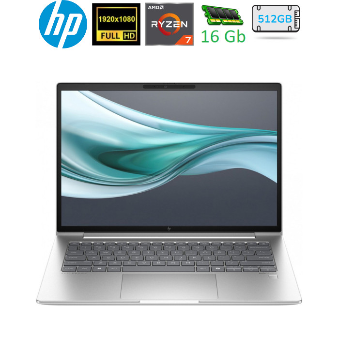 Ноутбук HP EliteBook 645 G11 (8Z3N3AV_V1); 14" WUXGA (1920x1200) IPS LED матовий / AMD Ryzen 7 PRO 7735U (2.7 - 4.7 ГГц) / RAM 16 ГБ (Max 64 ГБ) / SSD 512 ГБ / AMD Radeon Graphics / без ОП / LAN / Wi-Fi / BT / веб-камера / DOS / TPM / метал / 1.39 кг / сріблястий / підсвічування клавіатури / сканер відбитків пальців