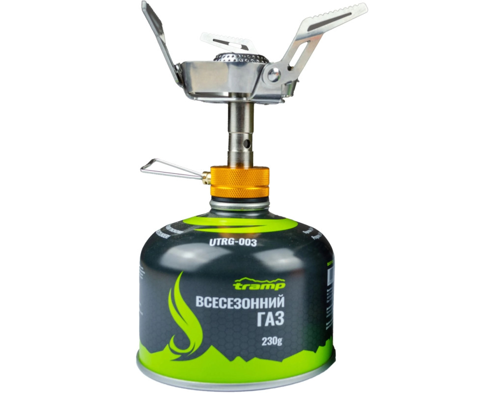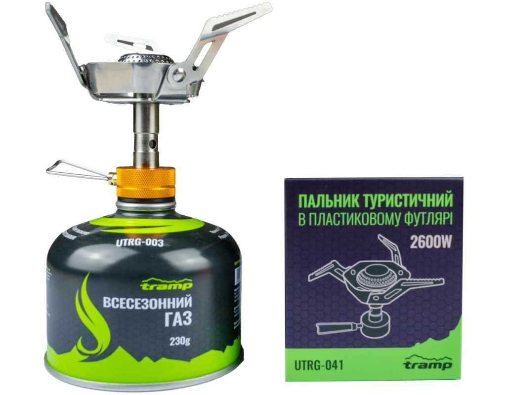 Пальник газовий складний з вітрозахистом Tramp UTRG-041 - компактний та економний туристичний газовий пальник середньої потужності для приготування їжі в посуді малого та середнього об'єму (казанки до 4.5 л) на компанію чи сім'ю від 1 до 5 людей.