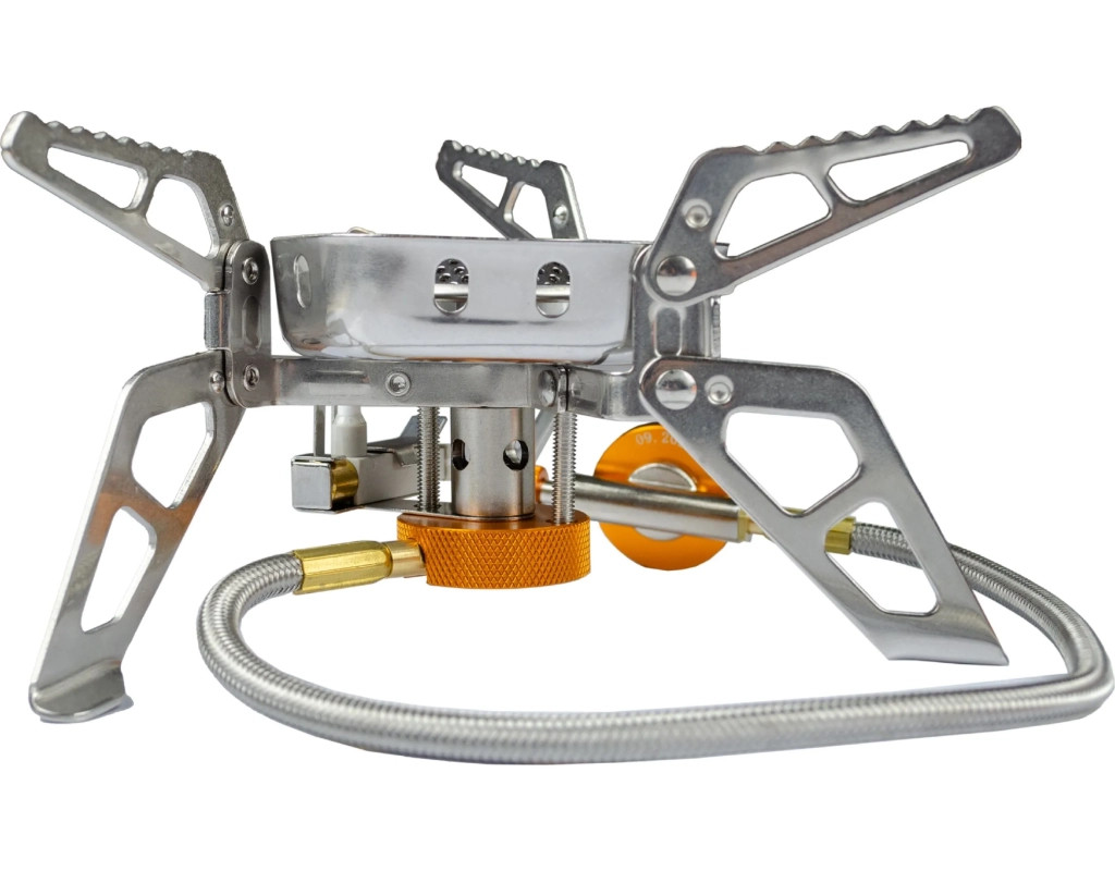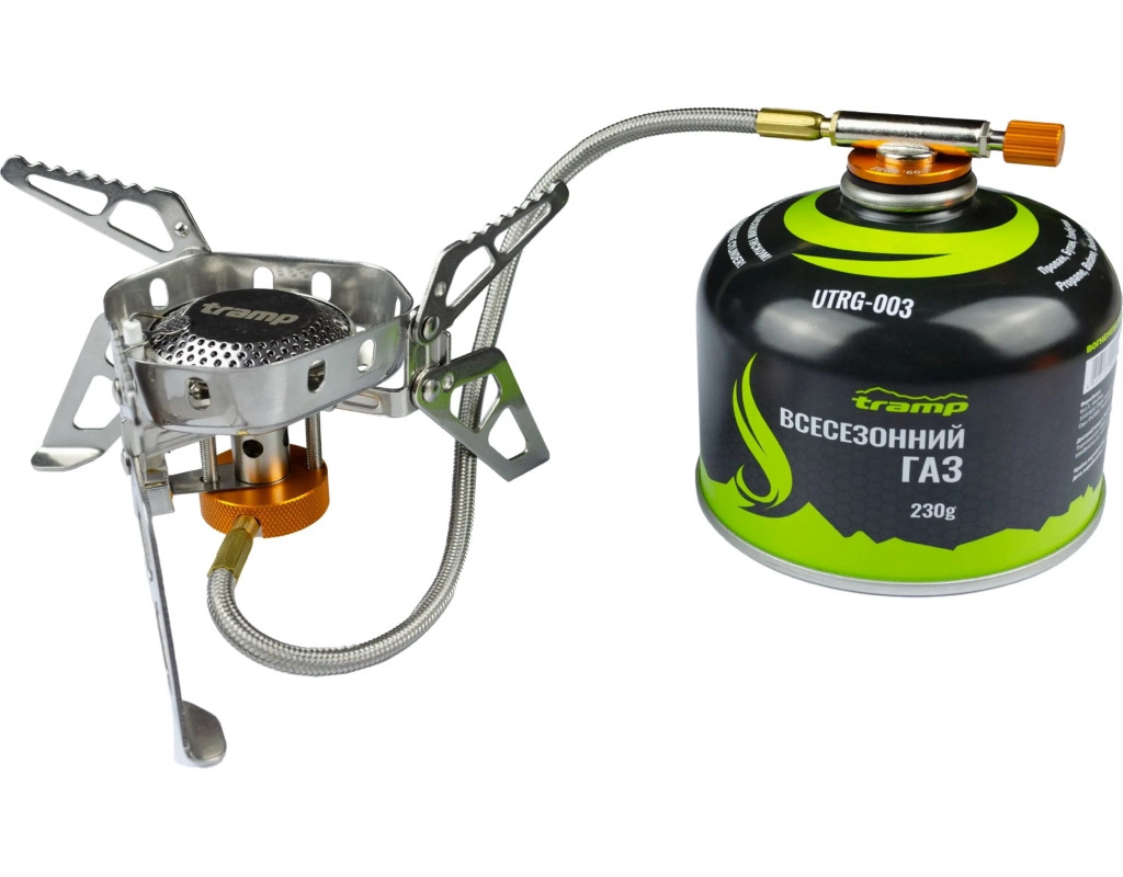 Економічний туристичний пальник виносної конструкції (зі шлангом) Tramp UTRG-046 має надійний стійкий корпус, що витримує вагу до 15 кг, що дозволяє готувати їжу в казанках об'ємом до 10-13 літрів. Рекомендована для використання туристам – любителям, рибалкам, мисливцям та шанувальникам відпочинку на природі з початку весни до кінця осені. особливості: Конфорка додатково захищена вбудованим вітрозахисним екраном, що збільшує ККД моделі та забезпечує додатковий захист шланга від відбитого полум'я. Забезпечена вбудованим п'єзопідпалом. Пальник призначений для використання з різьбовими балонами (epi-gas) Tramp TRG-002, TRG-003. Також є можливість підключення пальника на штоковий балон Tramp TRG-001 за допомогою перехідників Tramp TRG-018 і TRG-011. Час роботи на 1 балоні |