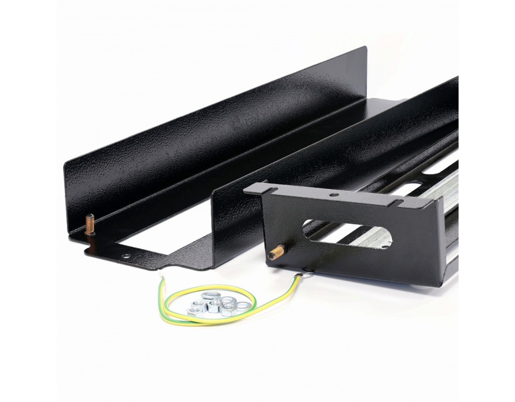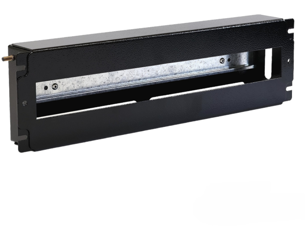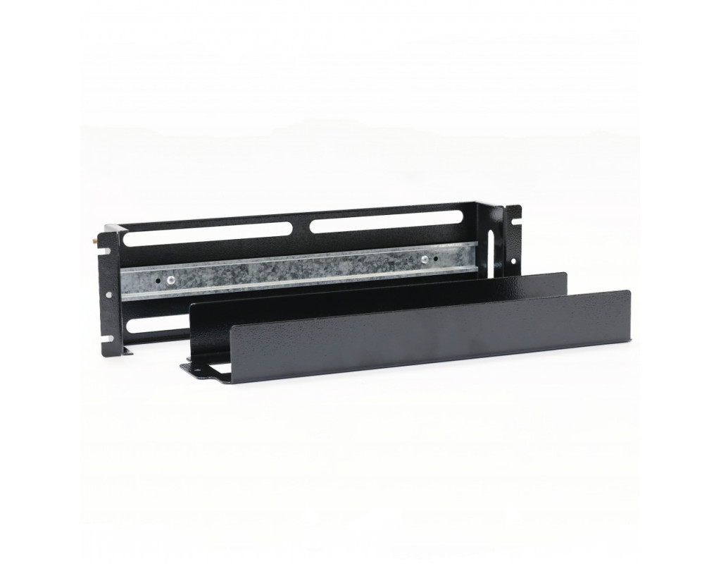 Електрична розподільна панель 19" 3U з DIN-рейкою призначена для автоматичних вимикачів, ПЗВ, диференціальних автоматів, силових розеток та інших пристроїв, що монтуються на DIN-рейку, кріпиться всередині серверних шаф або стійок. Панель виготовлена зі сталі, пофарбована порошковою фарбою. Панель має ємність до 24 автоматичних вимикачів завширшки до 17.5мм. Конструкція панелі має дві частини, основу та лицьову частину. Панель має встановлену оцинковану DIN-рейку. На основу з боку та всередині лицьової частини встановлені гвинти для заземлення. У корпусі панелі додано бічні отвори. Панель кріпиться на напрямні кріпленням М6 (гвинт, шайба, гайка). Лицьова частина може бути додатково зафіксована на двома гвинтами, для цього ліворуч та праворуч панель додатково є наскрізні отвори. |