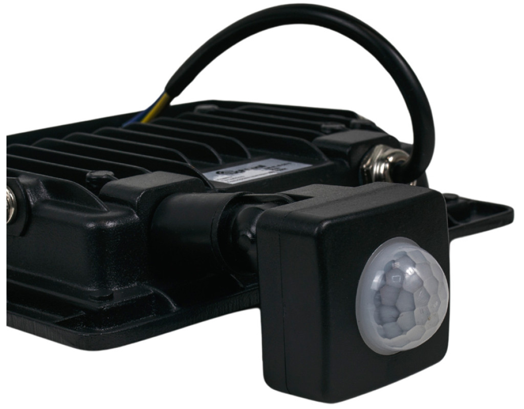 Прожектор світлодіодний Lightwell LW-FL-B-50-S 50 W з датчиком руху призначений для зовнішнього та внутрішнього освітлення об'єктів та приміщень: вітрин, банерів, бордів, вивісок, малих архітектурних форм, точкового підсвічування об'єктів, освітлення невеликих приміщень тощо. Світлодіодні прожектори є ефективною альтернативою традиційним джерелам світла. Основною перевагою світлодіодного прожектора є висока світловіддача при малому споживанні електричної енергії. Функціональні особливості Датчик рухуЦя модель обладнана автоматичним датчиком, який вмикає світло в разі виявлення руху біля прожектора, що забезпечує наявність освітлення тільки тоді, коли воно потрібне, і подовжує термін служби прожектора. Дальність спрацювання від 4 до 10 метрів, кут охоплення — 90°. На датчику можна налаштувати відстань виявлення від 4 до 10 метрів. Регулюється чутливість до освітлення — в який час доби буде працювати датчик. Регулюється таймер спрацьовування датчика. Налаштування датчика