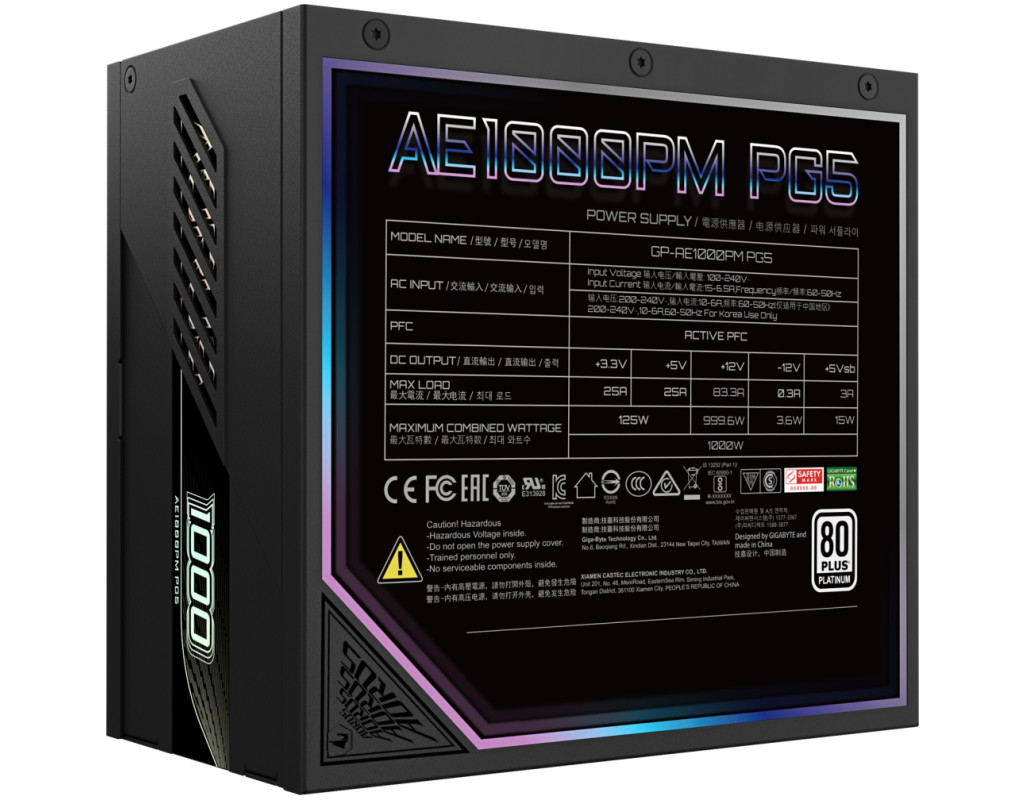 | Блок живлення GIGABYTE 1000W AE1000PM PG5 (GP-AE1000PM PG5) — це сучасний високопродуктивний пристрій, створений для ентузіастів, які цінують якість та надійність у кожній деталі. У той час як інші блоки живлення можуть не впоратися з вимогливими конфігураціями, цей потужний варіант з 1000 Вт ефективно обслуговує будь-які сучасні комп'ютерні системи, включаючи ігрові та робочі станції високого рівня. Особлива увага приділена стандарту ATX 3.0, що гарантує бездоганну сумісність з новітніми платформами. Завдяки повному модульному підключенню кабелів, установка та організація інтер'єру системного блоку проходять з легкістю, сприяючи оптимальному повітряному потоку та акуратності. Цей блок живлення підвищує рівень енергоефективності до небаченої висоти завдяки сертифікації 80 PLUS Platinum, що означає зменшене енергоспоживання, нижчі втрати тепла та менший рівень шуму при навантаженні. Активний модуль PFC виступає гарантом стабільної роботи системи, навіть у разі перепадів напруги, що значно підвищує безпеку компонування та довговічність роботи вашого обладнання. Для інтеграції з сучасними системами забезпечено підключення материнської плати 20+4 pin та процесора 2x4+4pin, а також унікальне можливість для відеокарт завдяки наявності 6x6+2 pin та спеціалізованого роз'єму 1x12VHPWR. Охолодження пристрою здійснюється високоякісним вентилятором діаметром 120 мм, який забезпечує тиху роботу навіть при інтенсивному використанні, не додаючи шуму у ваш робочий або ігровий процес. Різноманітні функції захисту, такі як OCP, OTP, OVP, UVP, SCP та OPP, працюють на запобігання будь-яким можливим ризикам, пов'язаним з перевантаженнями, перегрівом та короткими замиканнями, що робить цей блок живлення вірним охоронцем вашої системи. Компактні розміри (150 x 140 x 86 мм) дозволяють з легкістю інтегрувати блок живлення в різноманітні корпуси ПК, зберігаючи при цьому його повну функціональність. Восьмироз'ємна оснащеність для SATA та чотири роз'єми для Peripheral спрощують підключення широкого спектру периферійних пристроїв та аксесуарів. Вишуканий дизайн Gigabyte додає естетичного вигляду та статусності вашій системі, роблячи її справжнім витвором мистецтва. Укладені матеріали забезпечують надійність та довговічність, що стає вірним партнером для всіх, хто прагне витримати баланс між потужністю та ефективністю, не жертвуючи якістю. Придбавши GIGABYTE 1000W AE1000PM PG5, ви робите вибір на користь досконалості та безпеки у світі комп'ютерних технологій. |
