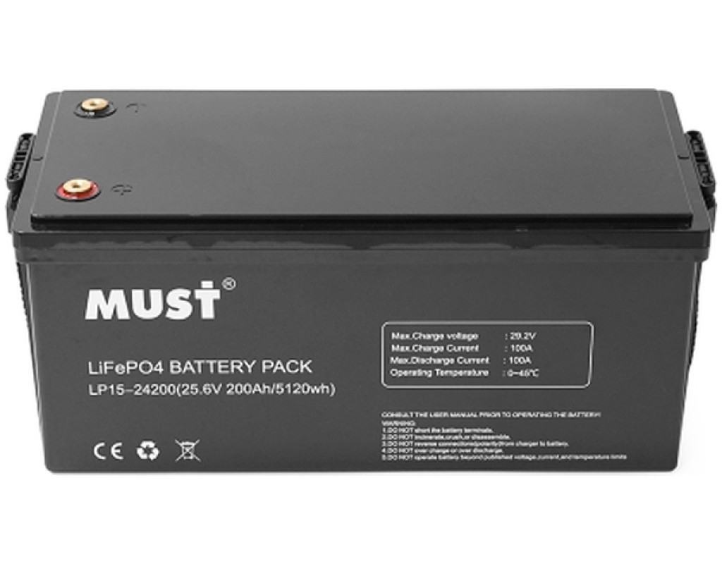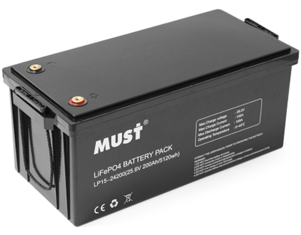 Акумуляторна батарея Must LiFePO4 25.6V 200Ah являє собою надійне та високоякісне енергопостачання для різних електричних пристроїв. Вона забезпечує стабільну і довговічну роботу завдяки використанню літієво-залізо-фосфатних акумуляторів. Батарея має вражаючу ємність 200 ампер-годин і номінальну напругу 25.6 вольта, що робить її ідеальним вибором для різних застосувань, від сонячних і вітряних систем до електричних автомобілів і коропових човнів. Характеристики: