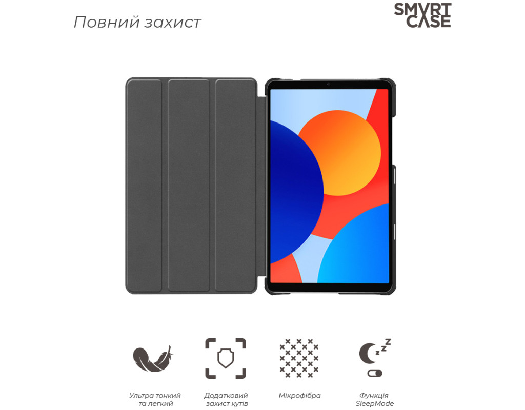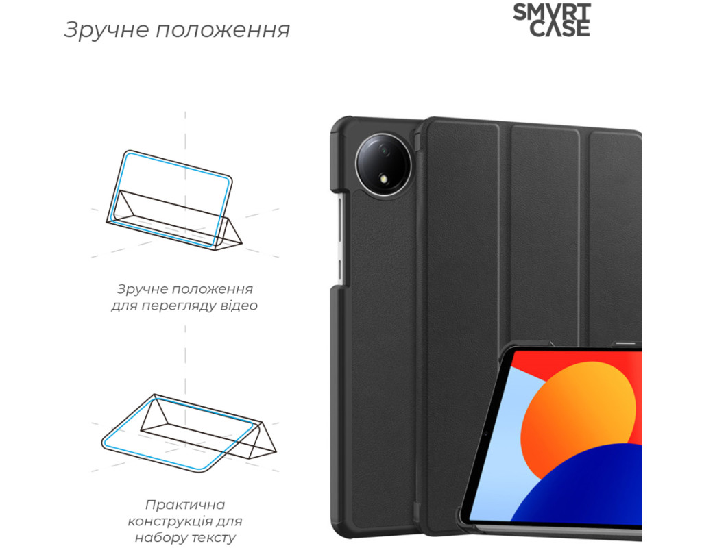 Тип - обкладинка, Сумісність з моделями - Xiaomi Redmi Pad SE, діагональ - 8.7, Спосіб кріплення - обкладинка, спосіб закриття - магніт, Матеріал - термополіуретан, чорний