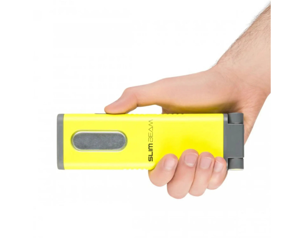 Mactronic SlimBEAM (800 Lm) Magnetic USB Rechargeable – це професійний акумуляторний ліхтар в міцному вологостійкому корпусі. Він обладнаний двома видами світлодіодів та має різноманітні способи кріплення. Використання саме літій-полімерного (Li-Pol) аккумулятора дозволяє застосовувати ліхтар при низьких та досить високих температурах без зниження ефективності і тривалості світіння. SlimBEAM стане в нагоді в майстерні, станції технічного обслуговування, чи у повсякденному використанні. Обладнаний яскравою світловою COB панеллю, SlimBEAM створює широкий заливний промінь для освітлення робочої зони. Для підсвітки важкодосупних місць в головній частині корпусу ліхтаря розміщений світлодіод SSC Y11 з направленим білим світлом. Потоужний магніт, та гачок для підвішування допоможуть розмістити SlimBEAM саме там де це необхідно. Вбудованого акумулятора об'ємом 4800 мАг вистачить на 12 годин роботи COB панелі, або на 23 години роботи направленого світлодіода. У складеному вигляді Mactronic SlimBEAM має компактні розміри і зможе поміститься в кишею сумки чи рюкзака. Ліхтар має 4 режими роботи, серед яких: три режими роботи COB діоду та 1 режим роботи направленого світлодіоду. Управління відбувається однією кнопкою, а режими перемикаються послідовно. Ліхтар виконаний в міцному та легкому корпусі, що забезпечує захист за стандартом IP66 (захист від пилу та водяних потоків або сильних струменів з будь-якого напрямку) і ударостійкість при падінні з висоти до 2 м на бетон. Тобто ліхтар не боїться перебування під проливним дощем, або падіння на підлогу. Mactronic SlimBEAM (800 Lm) Magnetic USB Rechargeable має вбудований акумулятор та зарядний кабель micro USB. Технічні характеристики: