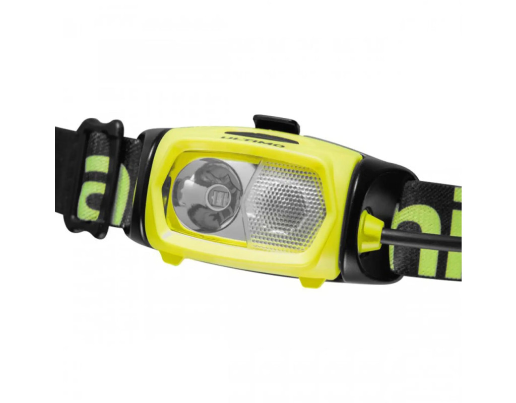 Налобний ліхтар Mactronic Ultimo (300 Lm) Cool/Red USB Rechargeable Helmet Kit - це надійний ліхтар, зі знімним акумуляторним відсіком і тривалою роботою на одному заряді елементу живлення. У комплекті йде спеціальне самоклеюче кріплення на каску та кліпси для кріплення дроту, а також метровий подовжувач, що дозволяє сховати акумуляторний відсік у внутрішню кишеню одягу, щоб уникнути переохолодження акумуляторів у холодну пору року. Модель живиться від вбудованого акумулятора 18650 (3.7V Li-ion) і була розроблена для тривалої роботи (понад 5 годин у максимальній яскравості) і максимальної функціональності. Алюмінієвий рефлектор створює досить широкий, і при цьому дальнобійний промінь світла основного діода, здатний освітлювати територію на відстані до 140 м, а зсувний прозорий дефлектор створить розсіяний промінь для підсвічування ближнього поля. Також ліхтар оснащений додатковими діодами червоного кольору на корпусі самого ліхтаря та на акумуляторному відсіці, які можуть працювати в режимі постійного світла або миготіння. Вони служать для подачі помітних сигналів, та підійдуть для переміщення на дорогах, на виробництві, будівництві чи будь-якому іншому місці з активним рухом транспорту. Акумуляторний відсік стягнутий гвинтами для запобігання випадковому відкриванню або потраплянню вологи всередину. Кут нахилу ліхтаря регулюється в семи положеннях в межах 45º. Все це робить Mactronic Ultimo відмінним вибором для широкого кола фахівців на виробництві чи будівництві, любителів зимового туризму, велосипедистів, і, навіть, спелеологів. Ліхтар управляється однією кнопкою, яка знаходиться у верхній частині корпусу. При натисканні вмикається режим максимальної яскравості. Перемикання режимів відбувається повторним натисканням цієї кнопки. Ліхтар має 4 режими роботи основного діода білого кольору, серед яких: High, Medium, Low і Strobe - для подачі добре помітних на великій відстані сигналів. Діоди червоного кольору мають два режими роботи: постійне світло та миготіння. Передній червоний діод вмикається утримуванням кнопки увімкнення ліхтаря. Для увімкнення заднього діода є окрема кнопка на блоці з акумулятором. Модель Mactronic Ultimo забезпечена всіма сучасними захисними системами, які дозволяють убезпечити ліхтар від короткого замикання, перегріву, механічних пошкоджень, або потрапляння вологи всередину. Корпус цієї моделі забезпечує захист за стандартом IPХ4 (захист від водних бризок з будь-якого напрямку) і ударостійкість при падінні з висоти до 1 м на бетон. Тобто ліхтареві не страшний проливний дощ чи випадкове падіння. Щоб попередити користувача про стан батареї, ліхтар оснащений індикатором заряду на акумуляторному блоці. Заряджання відбувається за допомогою кабелю micro USB. Час до повного заряду становить біля 4 годин (залежно від джерела живлення). Ліхтар укомплектований еластичним регульованим ременем (максимальна довжина 65 см), вбудованим акумулятором 18650 (3,7V 2000mAh Li-ion), кабелем micro USB, подовжувачем 1 метр, комплектом кріплення на каску, чохлом з петлею для ременя і чохлом на затяжках для зберігання. Технічні характеристики:
