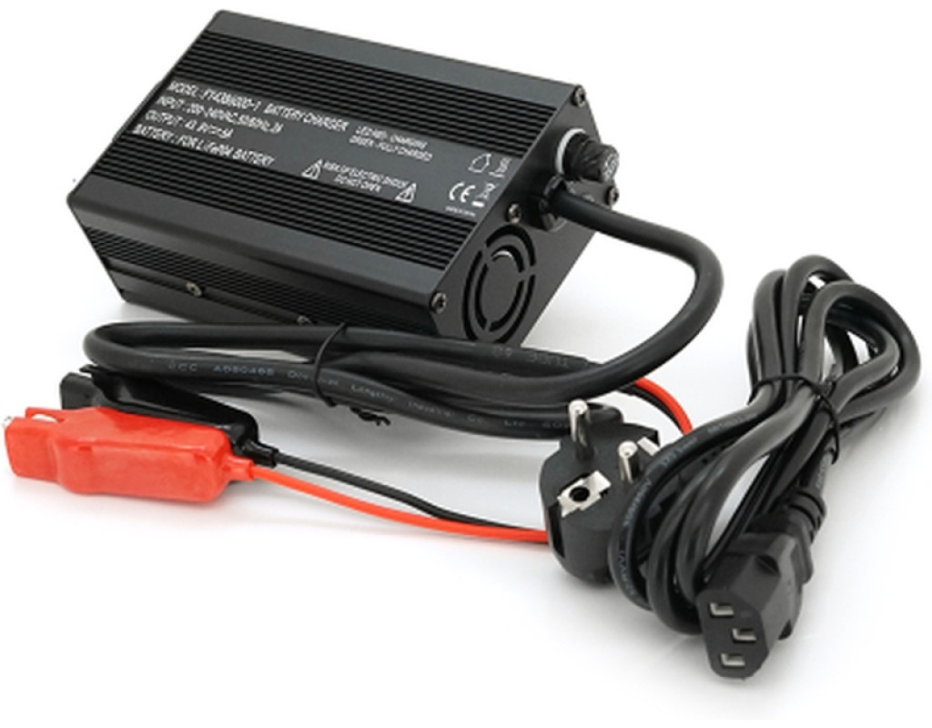 - Вхідна напруга: 100-240 В, 50/60 Гц - Вихідна напруга: 36 В (43,8 В) - Вихідний струм: 6 А - Кількість осередків (S): 12 - Тип акумулятора: LiFePO4 - Індикатор заряду: світлодіодний - Захист від перегріву: є - Захист від перевантаження: є - Розміри: 135 x 90 x 50 мм - Вага: 0,45 кг - Конектори: "крокодили |