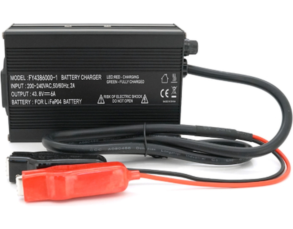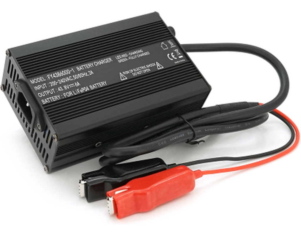 Зарядний пристрій для акумуляторів LiFePO4, 36 В (43,8 В), 12S, 6 А, "крокодили"