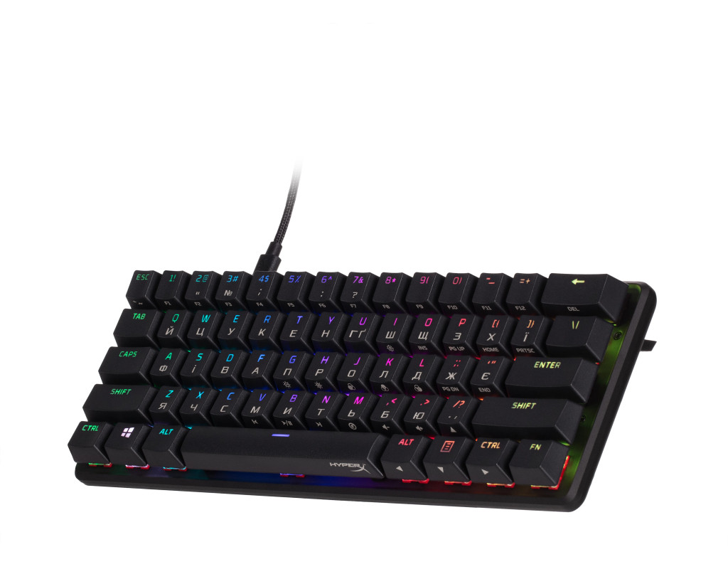 HyperX Alloy Origins ™ 60 - надійна, надзвичайно компактна клавіатура (всього 60% від стандартного форм-фактора), яка звільняє додаткове місце для розгонистих рухів мишею. Вона відрізняється міцним, повністю виготовленим з алюмінію корпусом і надійними перемикачами HyperX, які збалансовані з точки зору швидкості і продуктивності і розраховані на 80 мільйонів натискань. На вхідних в комплект двокомпонентних клавішних ковпачках з ПБТ вказані додаткові функції клавіш, що допомагає швидко знаходити їх. Висловіть свій стиль за допомогою перемикачів HyperX з відкритими світлодіодами і приголомшливих ефектів підсвічування. Для додаткової персоналізації клавіатури використовуйте макроси, налаштовані профілі підсвічування і безліч інших можливостей, що надаються програмним забезпеченням HyperX NGENUITY. |
