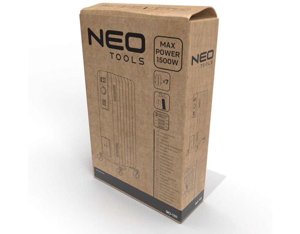 | Масляний 7-реберний нагрівач потужністю 1500 Вт 90-151 від NEO TOOLS - це пристрій, що пропонує 3 ступені нагріву: 600, 900 і 1500 Вт. Оснащений 7 ребрами розміром 120 x 500 мм. Нагрівач має вимикач зі світловим індикатором і регульований терморегулятор. |