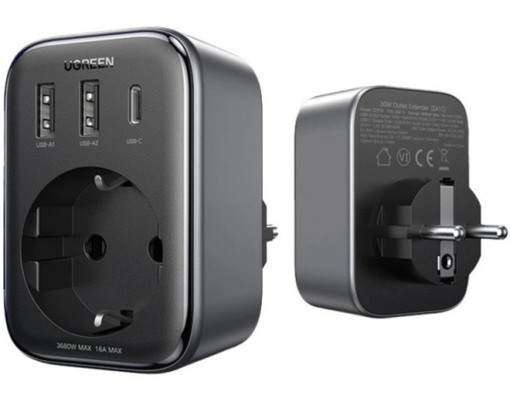 | Багатопортовий зарядний пристрій вихідною потужністю 30 Вт Ugreen 3xUSB 30W Outlet Extender (2хUSB-A+USB-C) CD314 (90613) призначений для швидкого зарядження USB Type-А і USB Type-С пристроїв.
