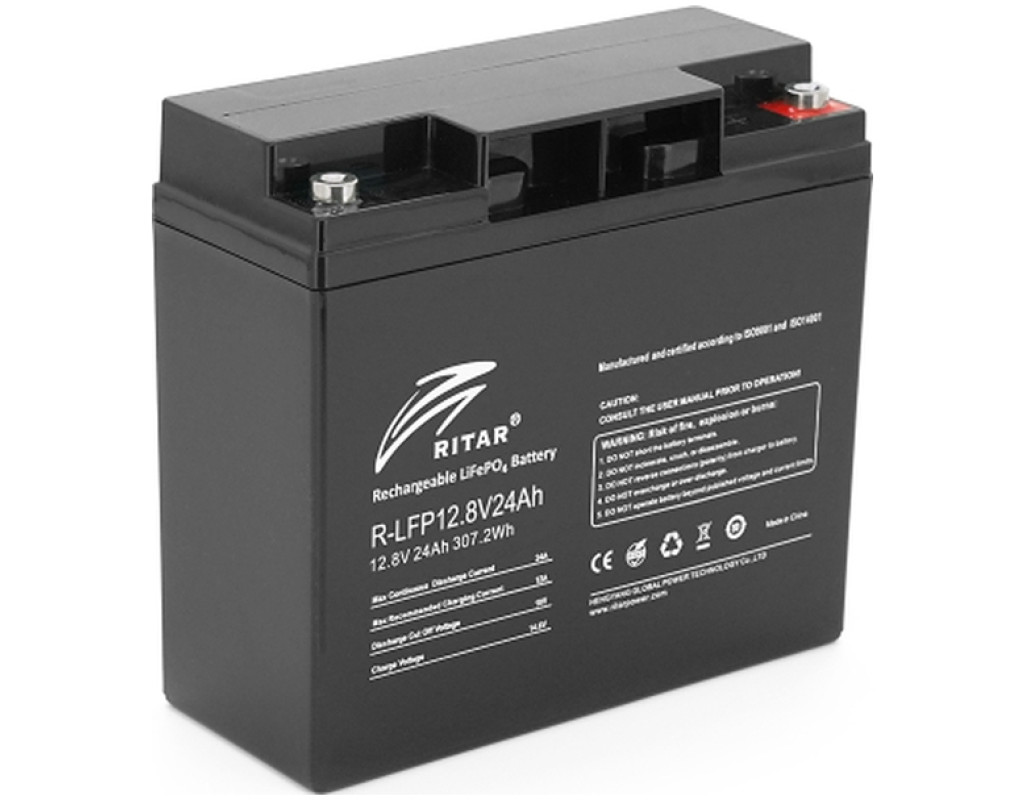 Акумуляторна батарея Ritar LiFePO4 12,8V 24Ah - це надійний та високоякісний пристрій, що ідеально підходить для використання в різноманітних сферах, як-от автомобільна промисловість, сонячна енергетика, морська навігація, а також для домашнього використання як джерело резервного живлення. Характеристики товару