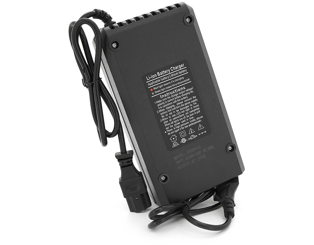 | Зарядний пристрій Jinyi для акумуляторів Li-ion 60V(67.2V),16S,6A,штекер Triangle plug (T-tipe / IEC / C13 N+L-). з індикацією,BOX |