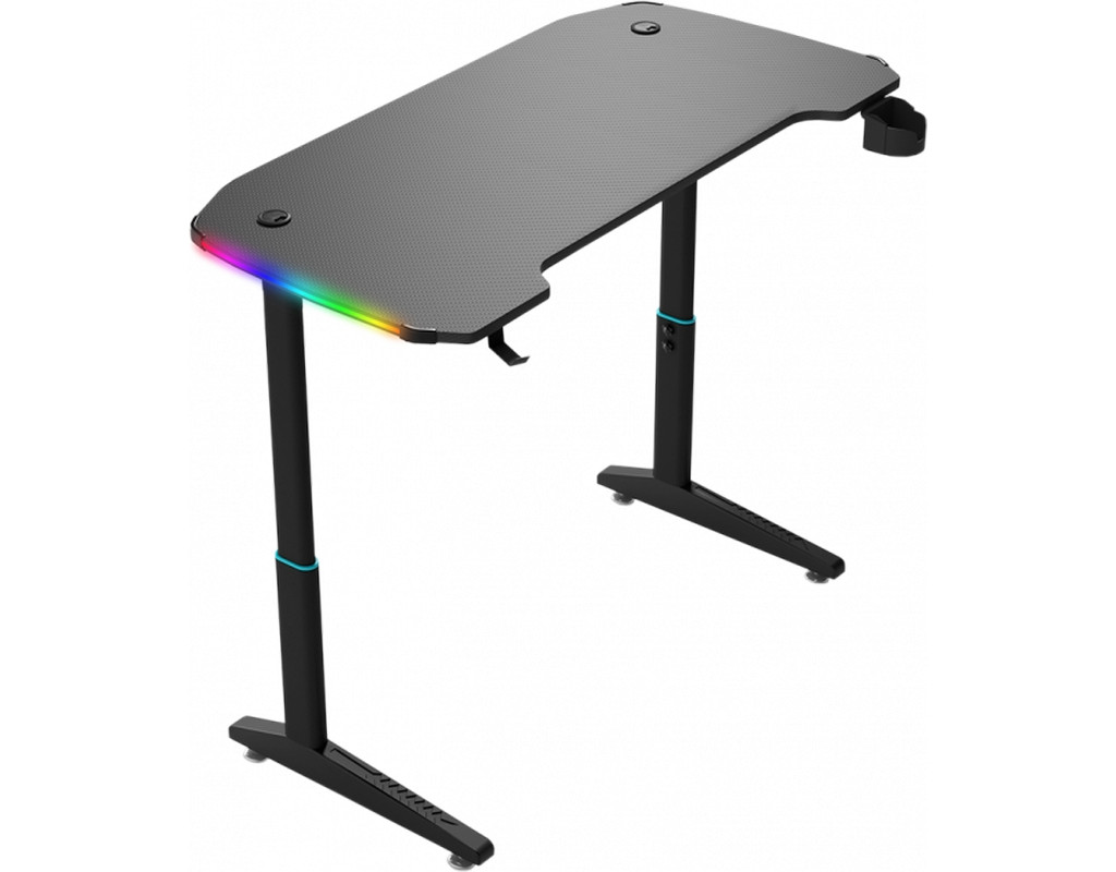Комп'ютерний стіл GT Racer T-1221 поєднує всі необхідні характеристики для створення ідеального робочого або ігрового місця. Продуманий дизайн, високоякісні матеріали та увага до деталей роблять його чудовим вибором для тих, хто цінує комфорт та довговічність. Незалежно від того, чи ви використовуєте його для роботи, навчання або ігор, цей стіл забезпечить зручність та естетику впродовж довгих років. Дизайн столу привертає увагу своєю сучасністю та продуманістю. Прямокутна стільниця зі скошеними кутами виконана з високоякісного МДФ та пластику, що надає їй не лише стильного вигляду, але й зносостійкості. Матеріали, з яких виготовлена стільниця, забезпечують їй тривалий термін служби та стійкість до механічних пошкоджень. Завдяки довжині 120 см і ширині 60 см, вона надає достатньо місця для розміщення комп'ютера, моніторів, клавіатури та інших ігрових аксесуарів. Ергономічність використання столу GT Racer T-1221 продумана до деталей. Важливою перевагою є можливість регулювання висоти від 71 см до 79 см за допомогою тихого електричного механізму. Це дозволяє налаштувати стіл під індивідуальні уподобання користувача, забезпечуючи максимальний комфорт та правильне положення тіла під час роботи чи гри. На столі передбачені тримач для навушників та підставка під стакан, що допомагає підтримувати порядок на робочому місці та мінімізувати ризик розлиття напоїв. Спеціальний отвір для шнурів дозволяє акуратно організувати кабелі, запобігаючи їхньому сплутуванню. LED підсвічування збоку столу додає йому привабливості, створюючи особливу атмосферу під час гри. Вона є додатковим джерелом світла і її можна налаштовувати залежно від вподобань. Міцна та надійна конструкція столу забезпечується використанням металевих елементів. Прямі стійкі ніжки надають столу додаткову стабільність навіть при активному використанні, запобігаючи ковзанню по поверхні та зсуву столу. Завдяки використанню високоякісних матеріалів, GT Racer T-1221 зберігає свій первісний вигляд та функціональність упродовж тривалого часу. Металева конструкція не тільки підвищує довговічність столу, але й робить його стійкішим до навантажень. |
