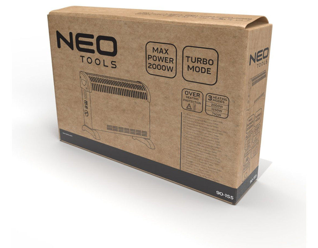 | Конвекторний обігрівач з термостатом 2000 Вт стандарт 90-154 від NEO TOOLS - це прилад, призначений для ефективного обігріву невеликих побутових, офісних приміщень або майстерень. Оснащений термостатом, він має 3 ступені нагріву, забезпечуючи потужність 750 Вт, 1250 Вт і 2000 Вт. |