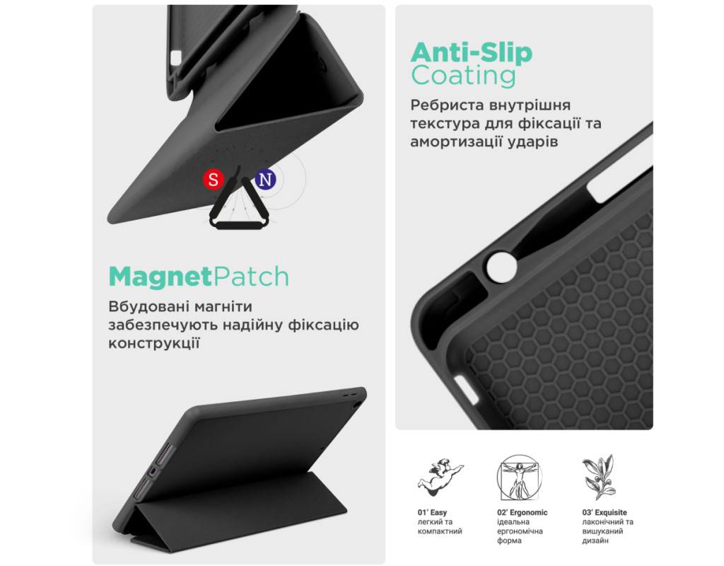 Тип - обкладинка, Сумісність з моделями - Apple iPad Air 13 2024, діагональ - 13, Спосіб кріплення - обкладинка, спосіб закриття - магніт, Матеріал - термополиуретан, штучна шкіра, чорний