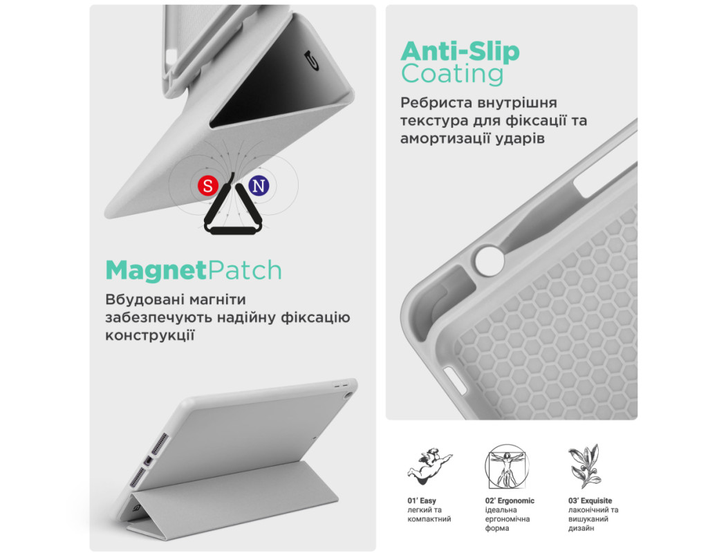 Тип - обкладинка, Сумісність з моделями - Apple iPad Pro 11 2024, діагональ - 11, Спосіб кріплення - обкладинка, спосіб закриття - магніт, Матеріал - термополиуретан, штучна шкіра, світло-сірий
