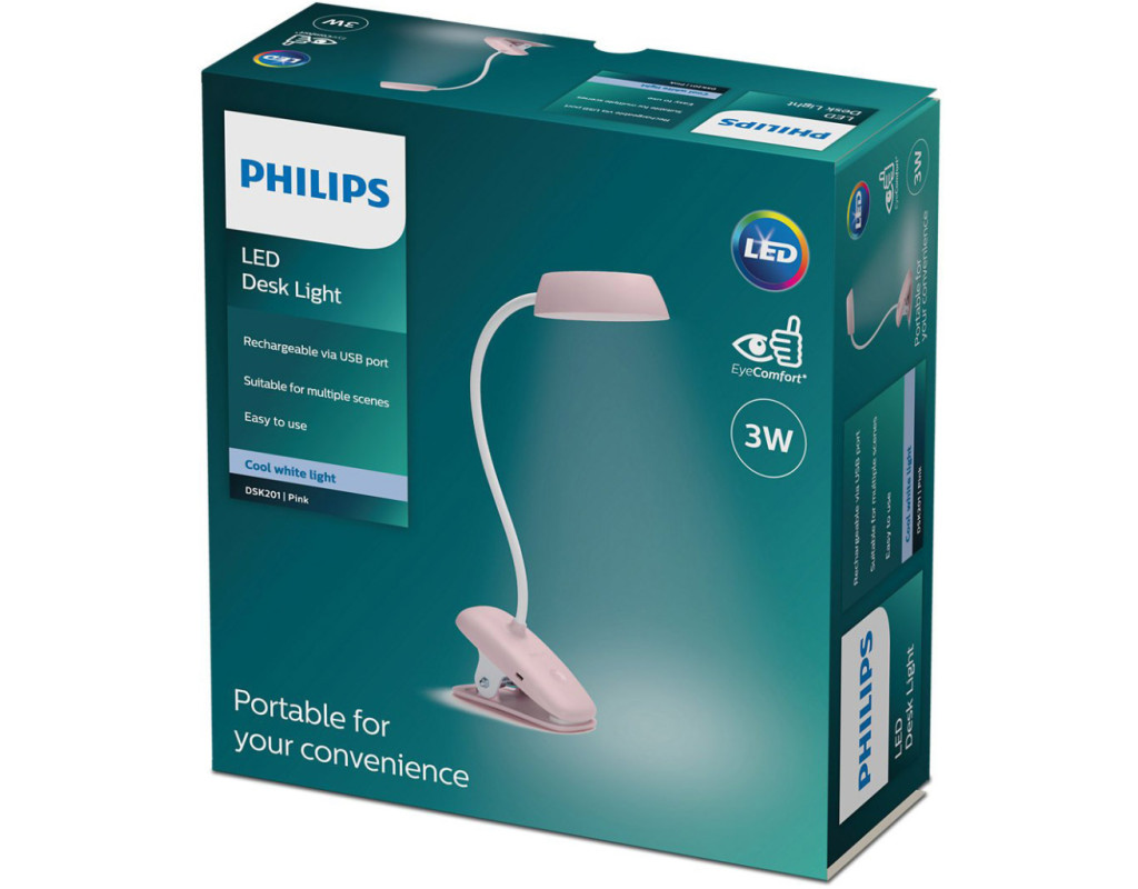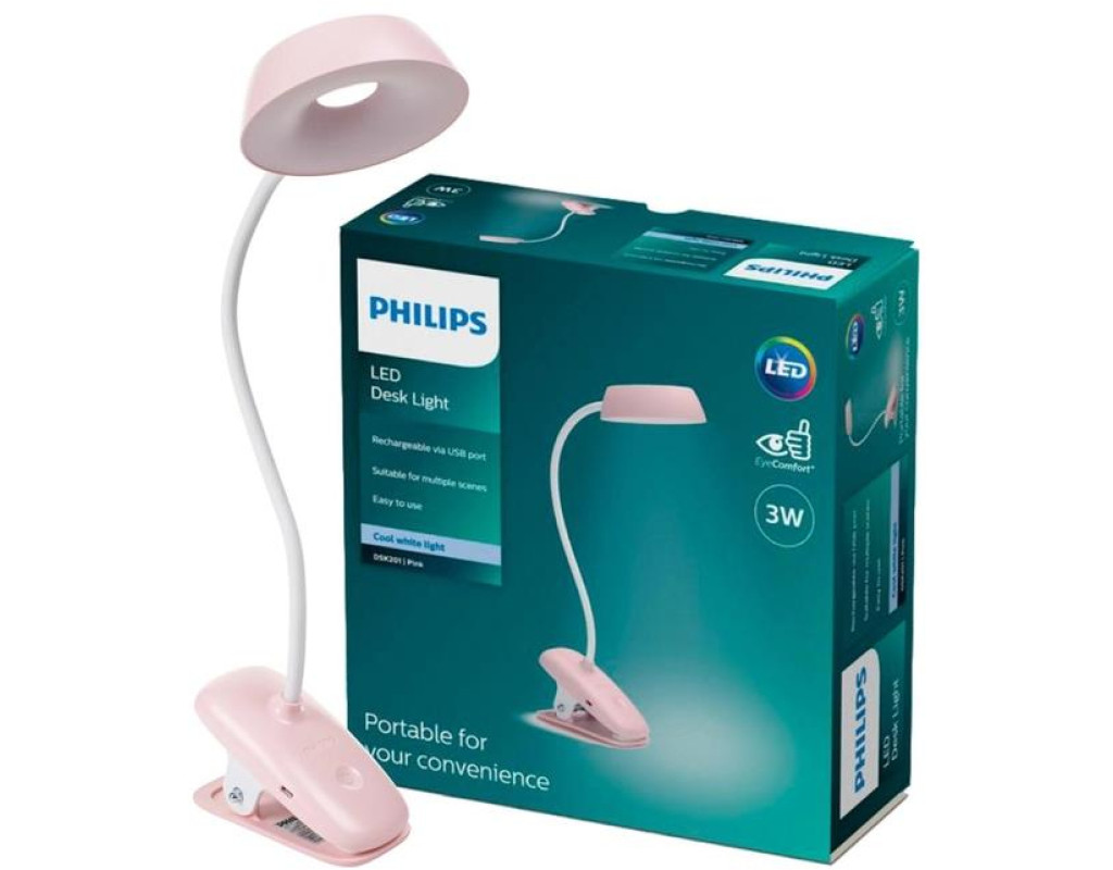 Лампа настільна Philips Donutclip - це стильне і компактне джерело світла з вбудованим акумулятором, що дозволяє використовувати його без підключення до мережі. Завдяки потужності 3 Вт та теплоті 4000K, лампа забезпечить комфортне освітлення вашого робочого простору чи нічного столика. Лампа оснащена портом USB-A, що дозволяє заряджати її в будь-який зручний момент. Її рожевий колір додасть ніжності та естетики до вашого інтер'єру. EyeComfort - світло, безпечне для очей Особливості: