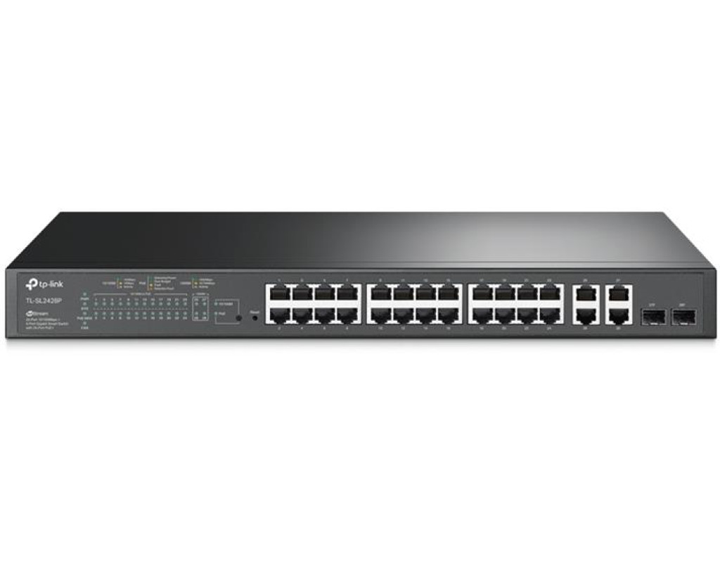 | Smart комутатор SL2428P обладнаний 24 портами RJ45 10/100 Мбіт/с, 4 портами RJ45 10/100/1000 Мбіт/с і 2 гігабітними комбо SFP-слотами. Всі 24 порти RJ45 10/100 Мбіт/с підтримують стандарт IEEE 802.3at af (PoE+), забезпечують загальну потужність об’ємом 250 Вт і володіють зручними функціями управління PoE. Комутатор забезпечує високу продуктивність, має функцію приоритизации даних (QoS) рівня Enterprise, надійними стратегіями захисту і безліччю функцій управління другого рівня.