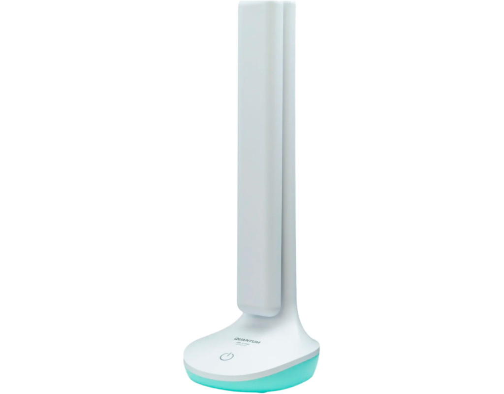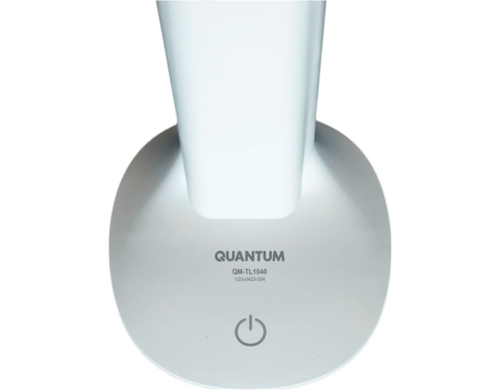 Настільна лампа сенсорна Quantum QM-TL1040 ONTARIO має сучасний зовнішній вигляд, оснащена складаною стійкою, що дає змогу вибрати необхідний кут освітлення. Виріб оснащено сенсорним перемикачем для ввімкнення світла, вибору режиму світла (тепле, біле, об'єднане тепло-біле світло) і вибору режиму яскравості (мінімальне, середнє, максимальне світло), що допоможе застосувати лампу до різних потреб. Лампа живиться вбудованим літій-іонним акумулятором 18650 і забезпечує чудове освітлення. У лампі використовуються 20 світлодіодів SMD, які є енергоощадними, мають високу яскравість і тривалий термін служби. Quantum QM-TL1040 ONTARIO оснащена індикатором заряду акумулятора - під час заряджання горить червоне світло, а коли повністю заряджений - горить зелене світло. Є сенсорна кнопка управління і звичайний вимикач. Виріб оснащений вхідним портом Micro-USB. Лампу можна заряджати за допомогою кабелю USB, який входить до комплекту. Настільна лампа може працювати під час заряджання. Завдяки захисту від перезарядки і перезарядки акумулятора, буде забезпечено його довготривале використання в безпечному режимі. Світло виробу м'яке, підходить для освітлення в закритих приміщеннях, як-от будинки та торгові центри, і це ідеальна лампа для використання в офісі та вдома. Освітлення Заряджання лампи Світловий потік: