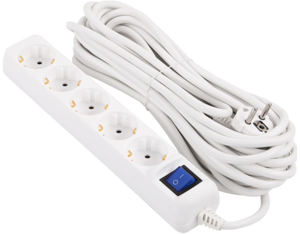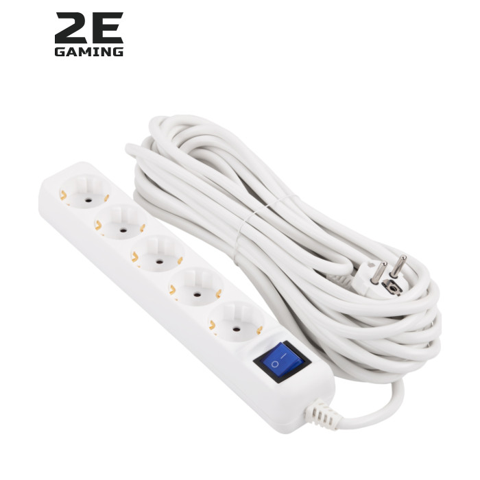 | Мережевий подовжувач 2E модель U05ES15M10WH із вимикачем призначено для підключення офісної та побутової техніки сумарною потужністю до 3,5 кВт. Має п’ять євророзеток типу Schuko (F) із заземленням і захисні шторки. Трижильний кабель із перерізом жили 1,5 мм², матеріал провідника – мідь. Білого кольору, довжина кабелю 10 м. |