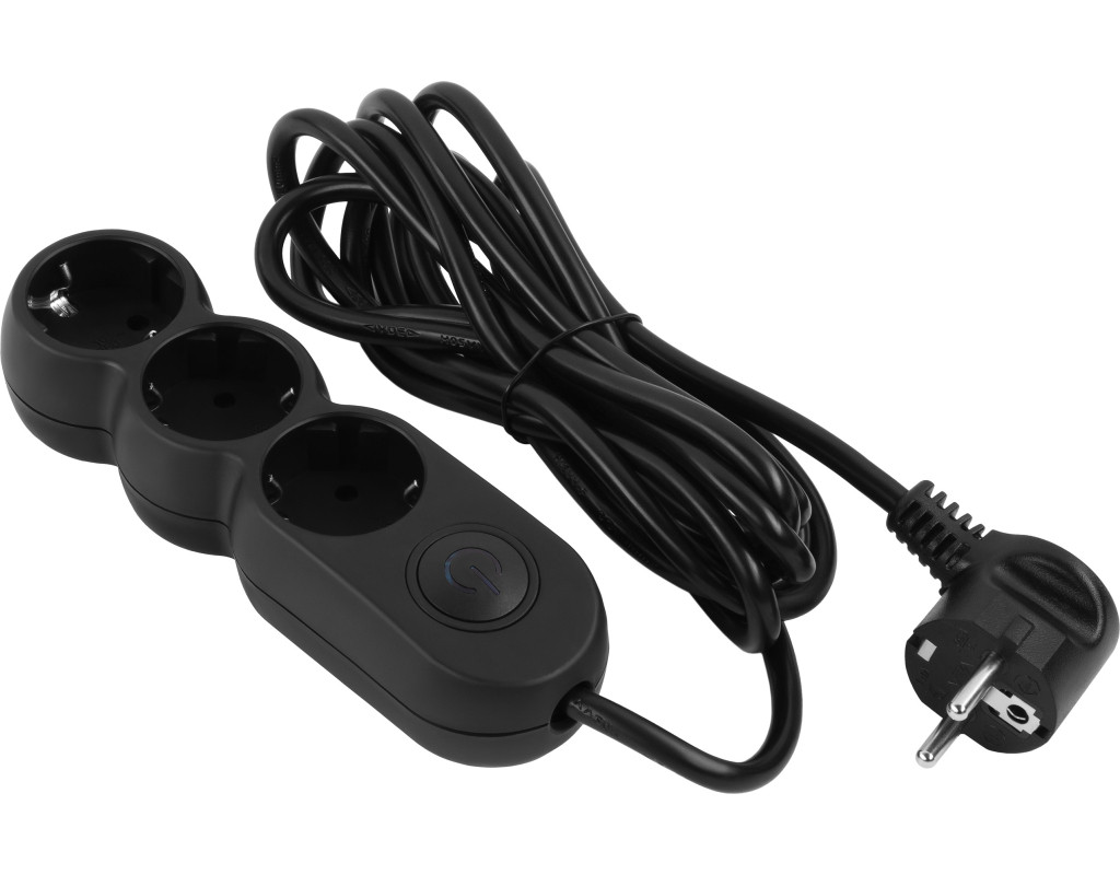 Кількість розеток - 3, євророзетка із заземленням (Тип F), Довжина кабелю - 3 м, заземлюючий контакт, із загальним вимикачем, Сумарна потужність підключеного навантаження - ≤ 2300 Вт, Колір - чорний