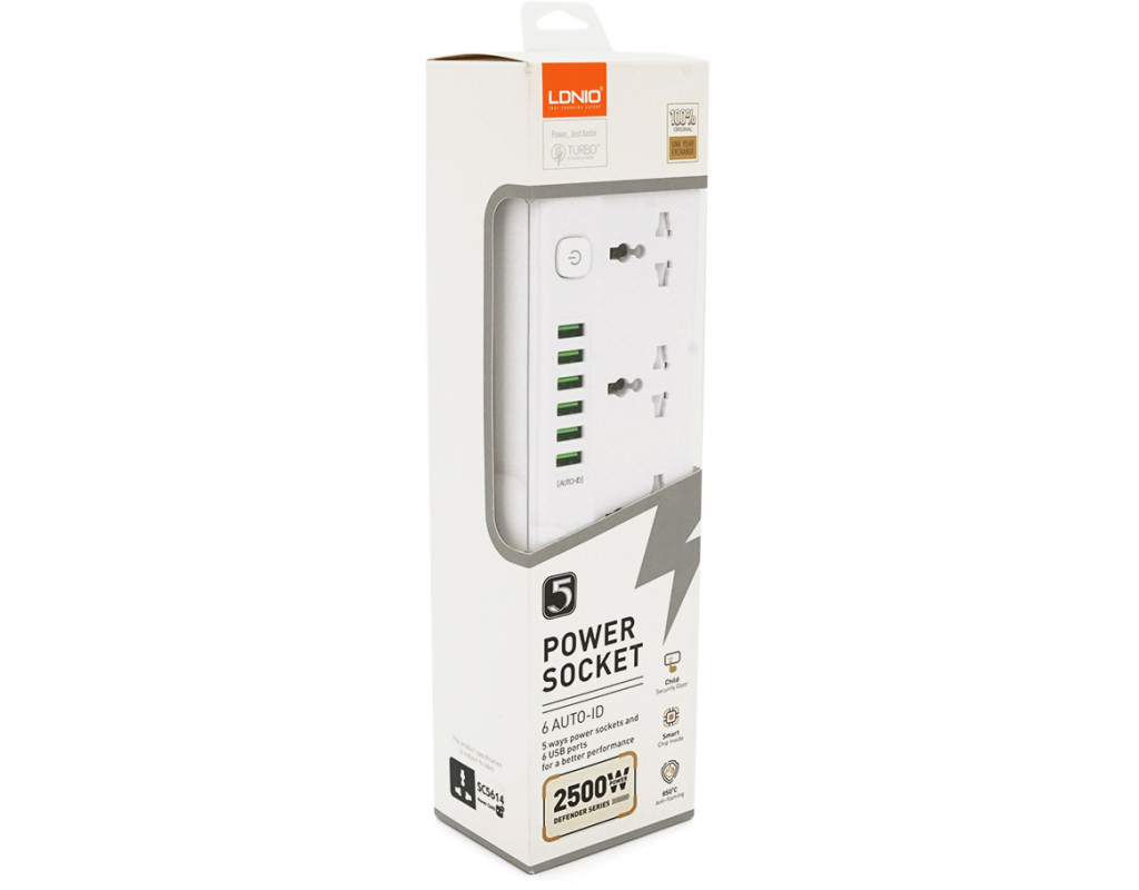 Мережевий фільтр LDNIO SС5614, 5 Розеток + 6 USB, 2 м, перетин 3х0, 75мм, White, Box